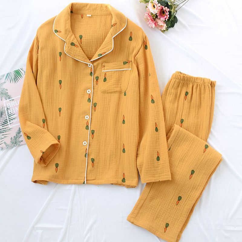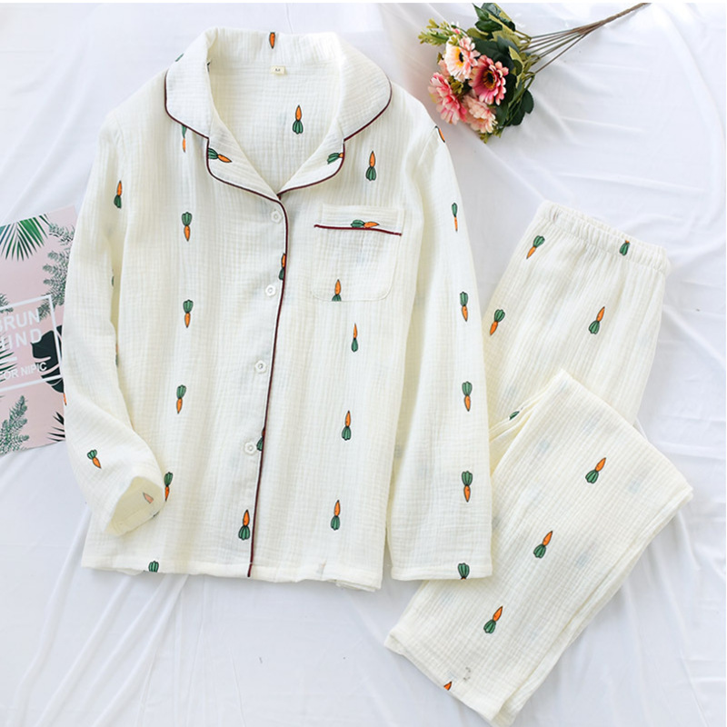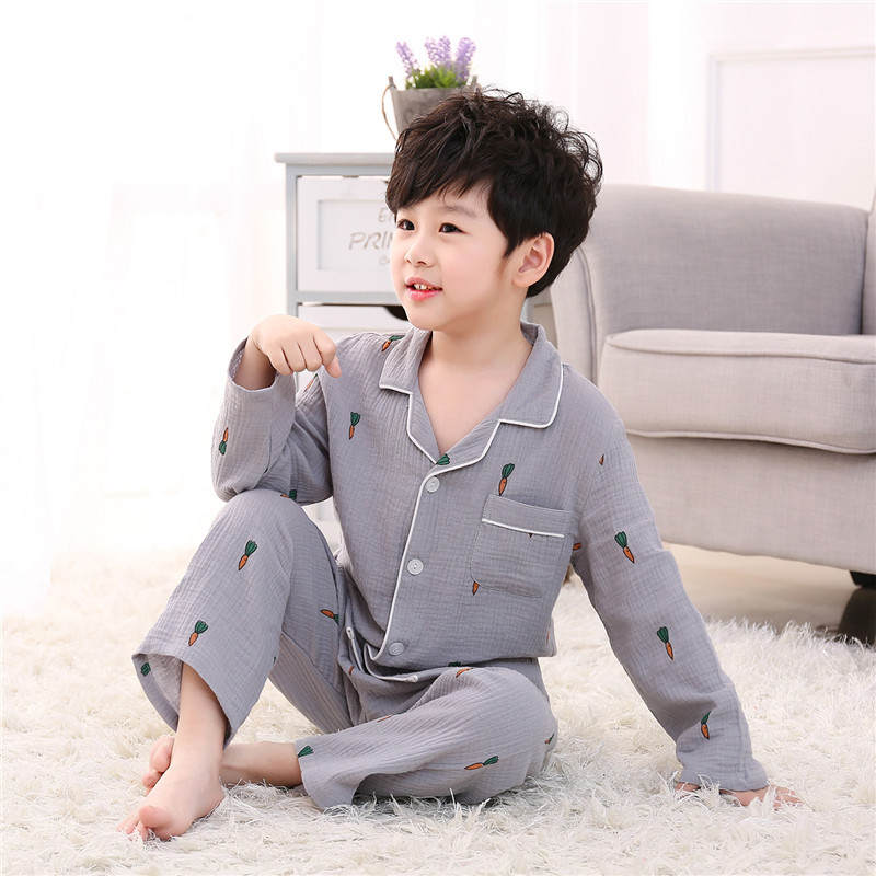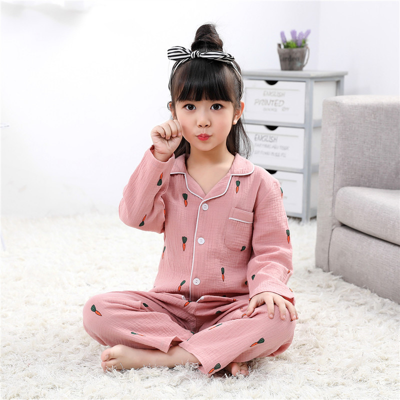 4 면 파자마의 가족 여성용 긴팔 바지 여름 면 거즈 세트 남성 플러스 사이즈 가정 의류 캐주얼스토어 가기