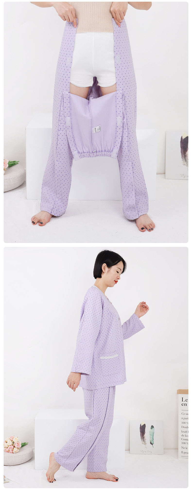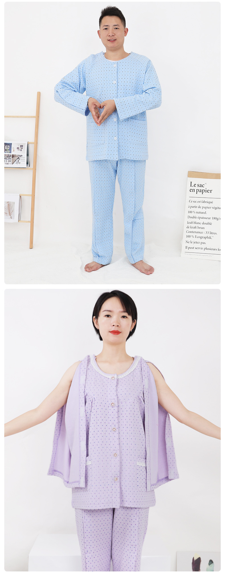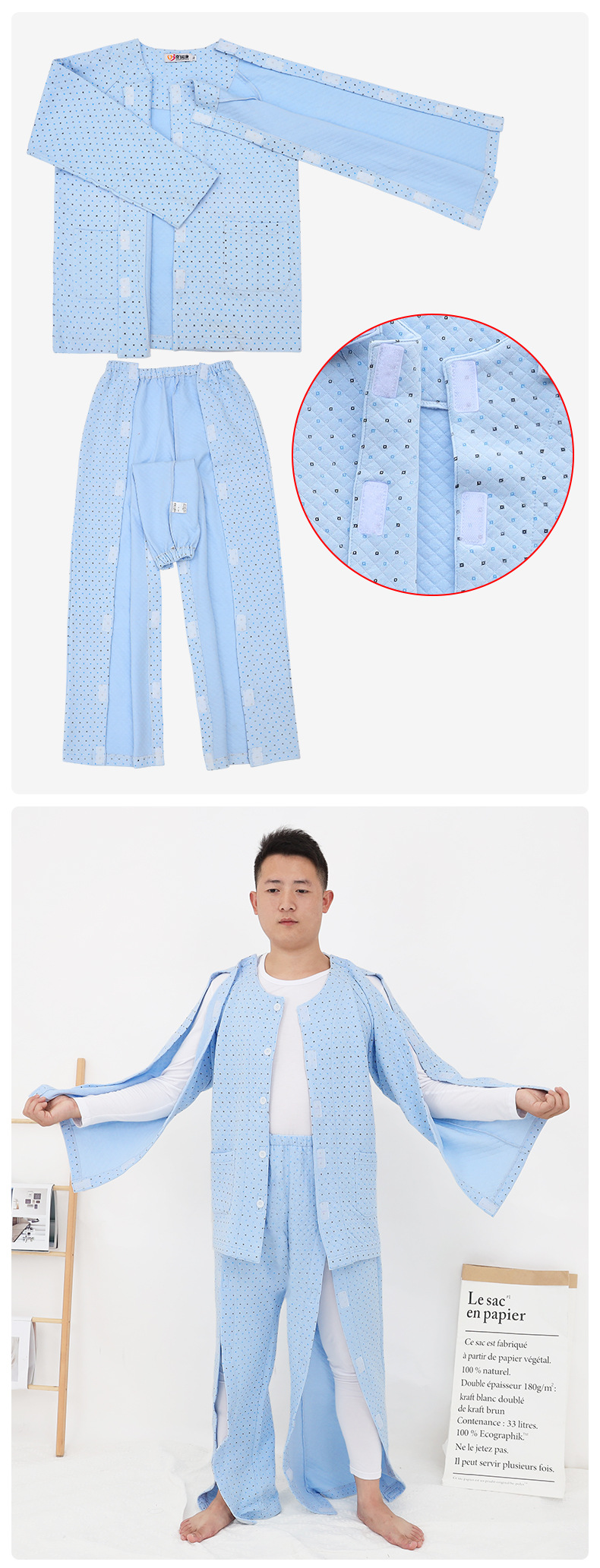 봄과 가을 에어 레이어 얇은 면 페이스트 간호 세트 착용하고 벗기 쉬운 정형 병원 세트 침대 노인 잠옷 바지스토어 가기