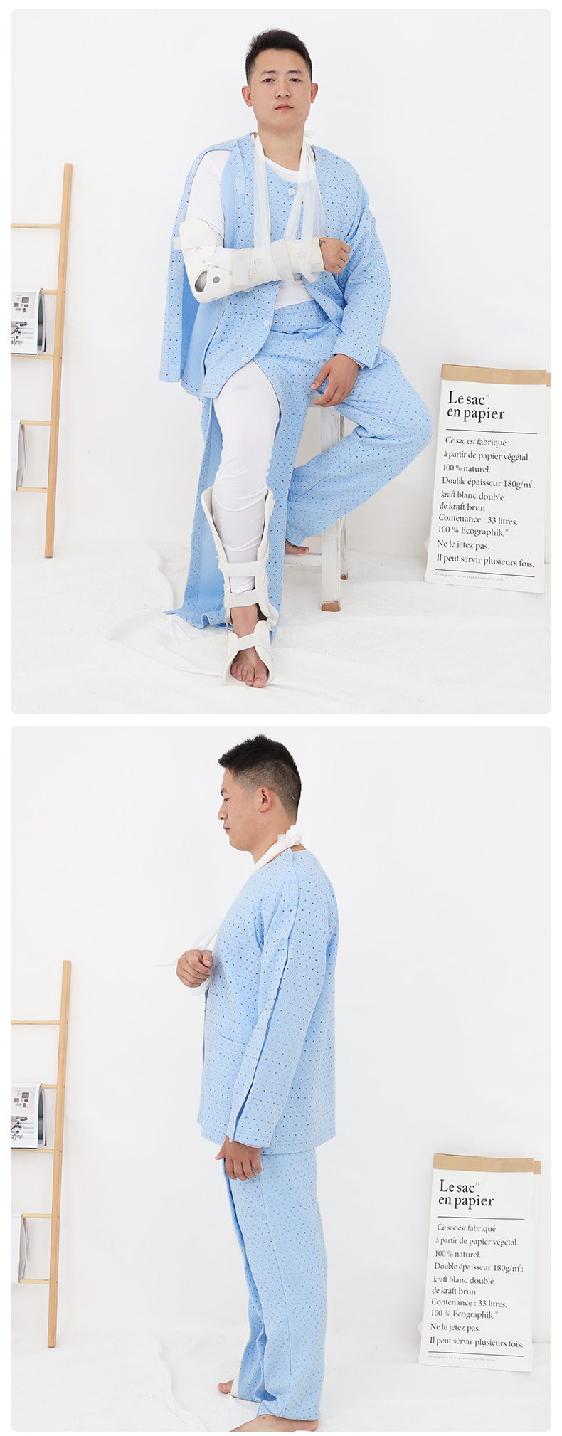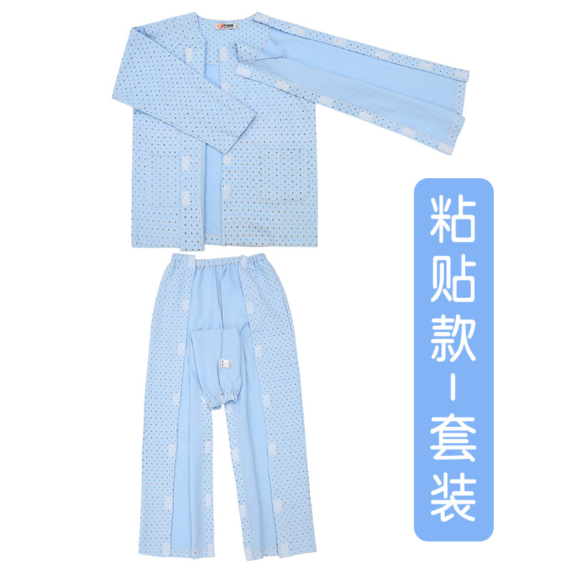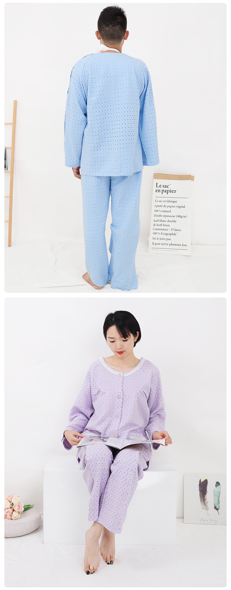 봄과 가을 에어 레이어 얇은 면 페이스트 간호 세트 착용하고 벗기 쉬운 정형 병원 세트 침대 노인 잠옷 바지스토어 가기
