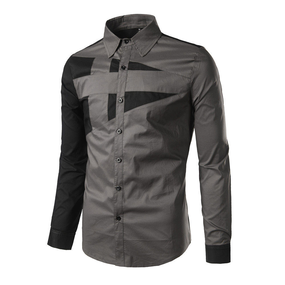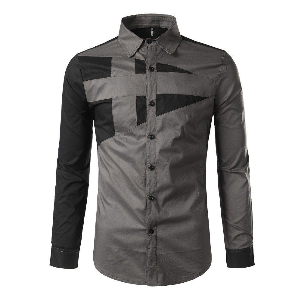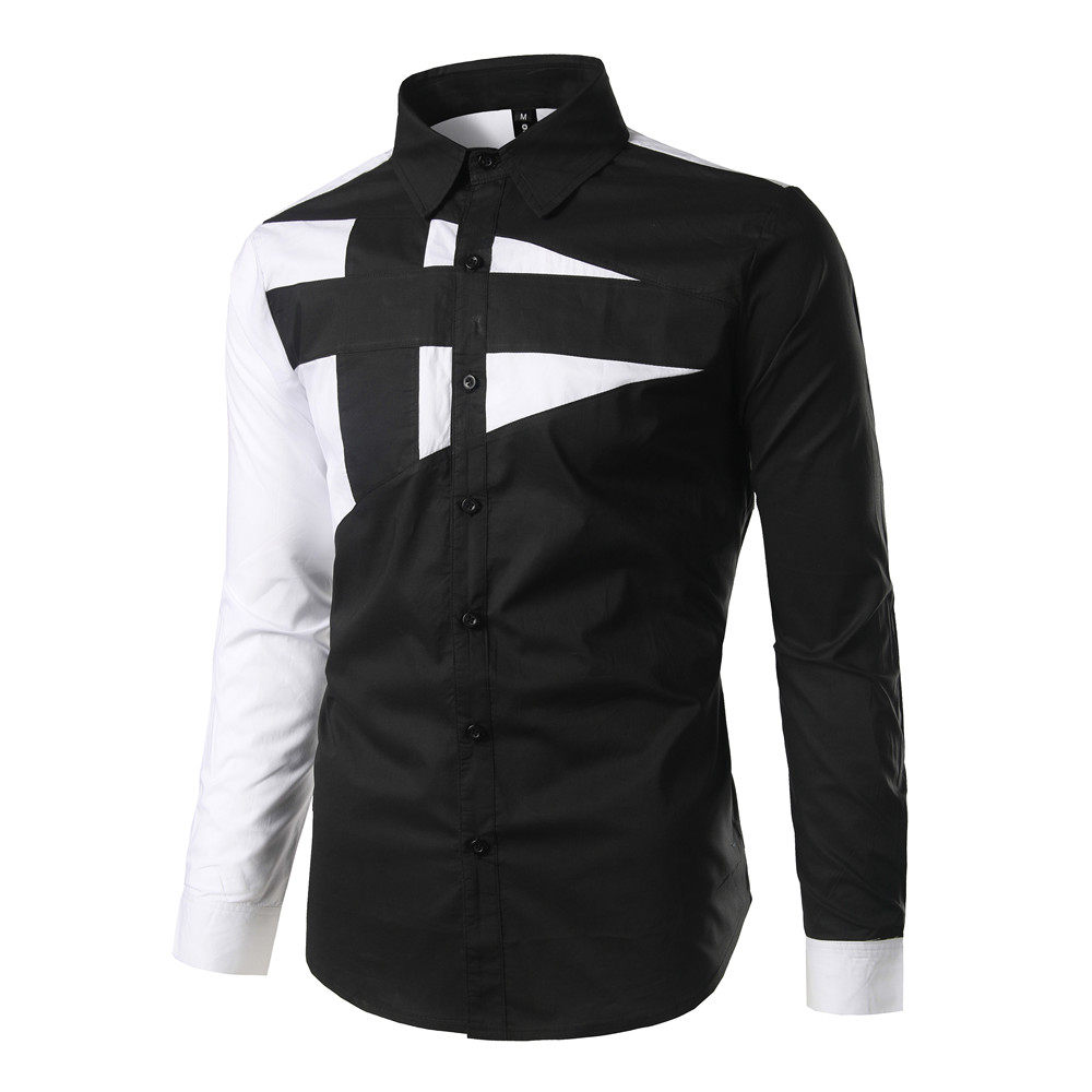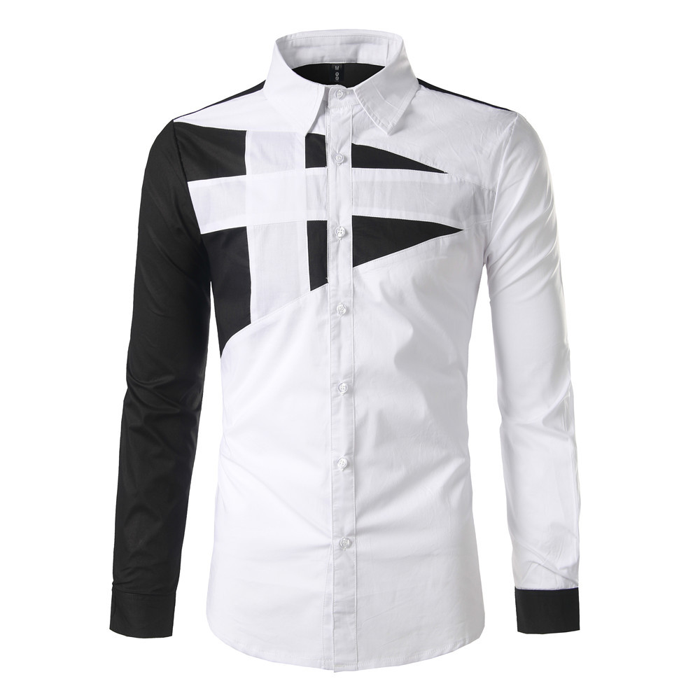 AliExpress 2020 대외 무역 새로운 남성 슬림 긴 소매 셔츠 개성 디자인 대비 컬러 스티칭 셔츠 C01