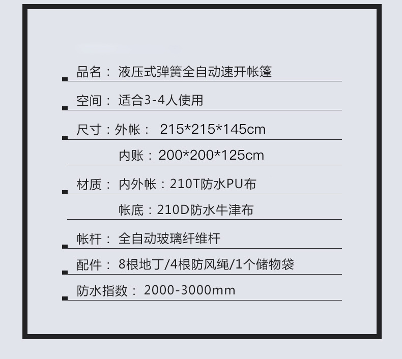 3-4人 包装尺寸77*13*13cm 单个4kg