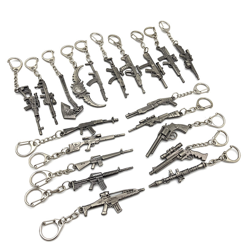创意卡通周边AK47沙漠之鹰枪模武器合金钥匙扣6cm小挂件 外贸货源