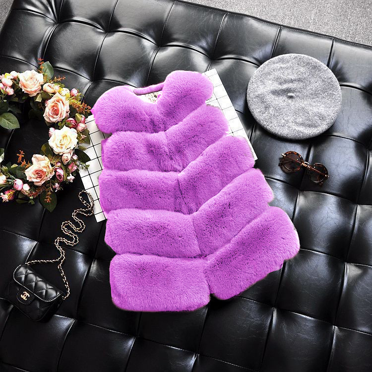 여아 중년 어린이 인조 여우 모피 스티칭 조끼 중간 길이 어린이 겨울 인조 모피 코트 여아 조끼