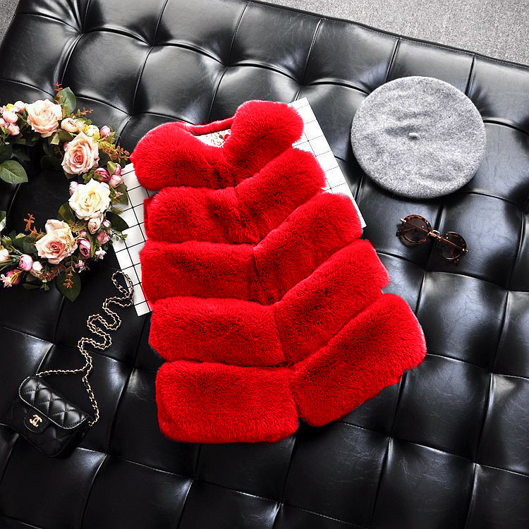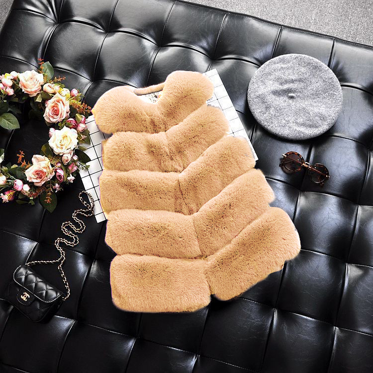 여아 중년 어린이 인조 여우 모피 스티칭 조끼 중간 길이 어린이 겨울 인조 모피 코트 여아 조끼스토어 가기