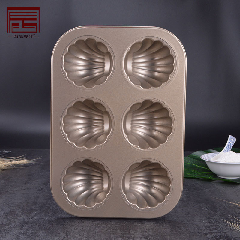 Our madeleine pan is constructed of carbon steel, which disperses heat evenly for terrific results and will not rust or warp in the oven. non-stick Coating。