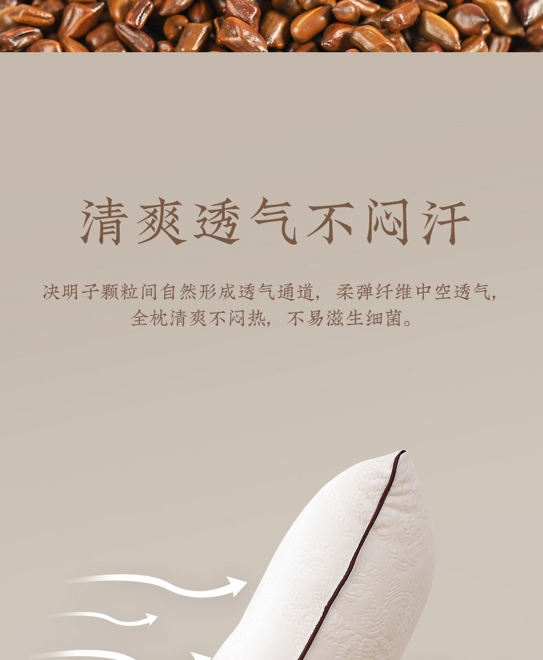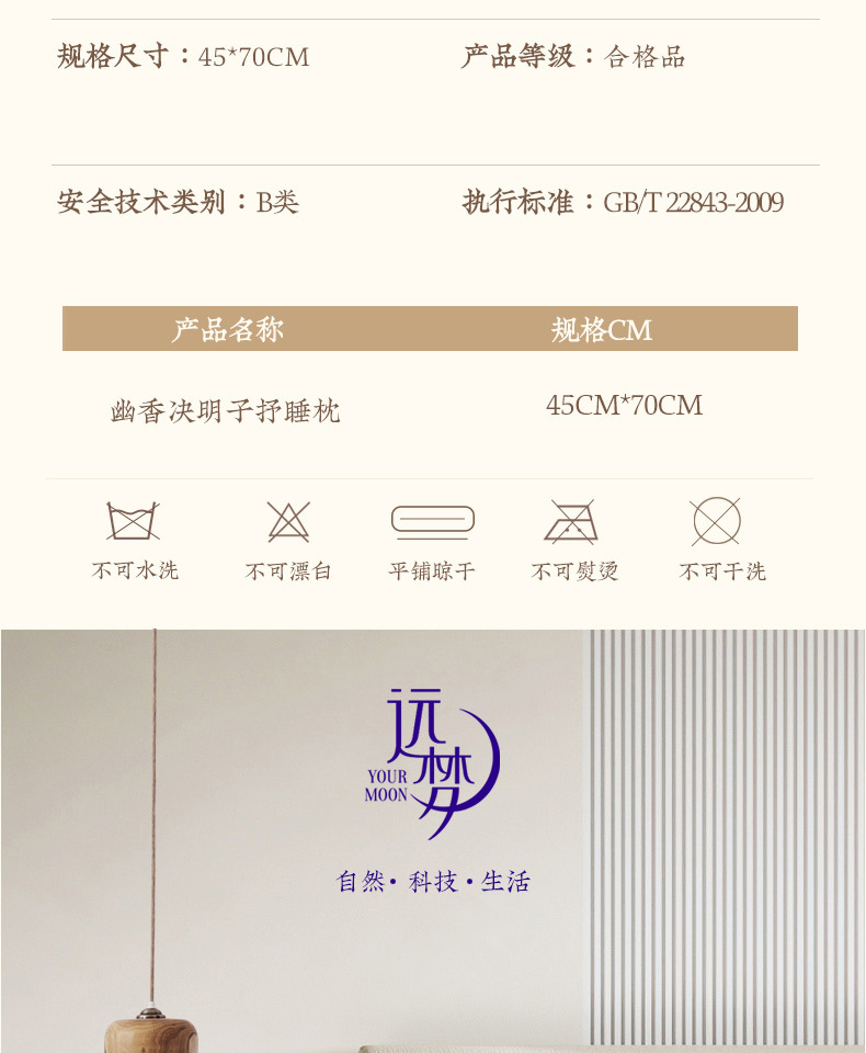 원멍 베개, 향기로운 결명자, 편안하고 고정된 형태의 베개, 베개심이 쉽게 변형되지 않고 붕괴되지 않는 목 보호 베개, 단단한 베개