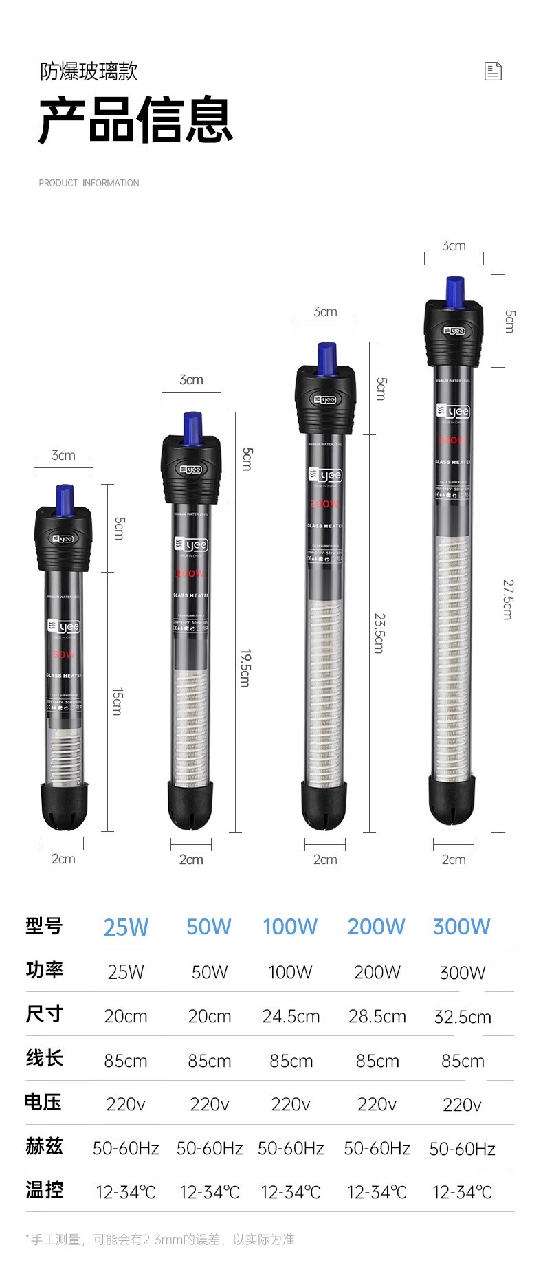Yee 물고기 탱크 가열 막대 거북이 히터 스테인레스 스틸 비 분리 물 차단 자동 일정 온도 수족관 가열 막대스토어 가기