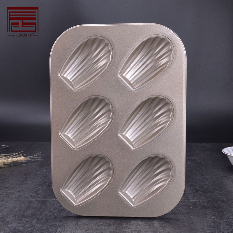 我们的玛德琳蛋糕烤盘是用碳钢做的,它能均匀的分散热量,效果非常好,不会在烤箱中生锈或变形。