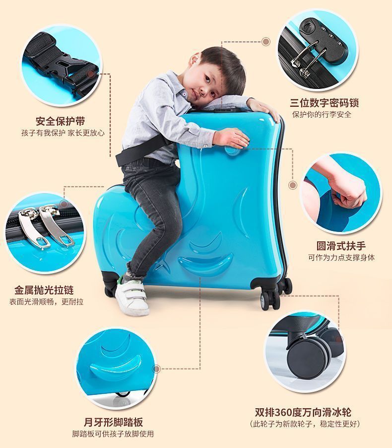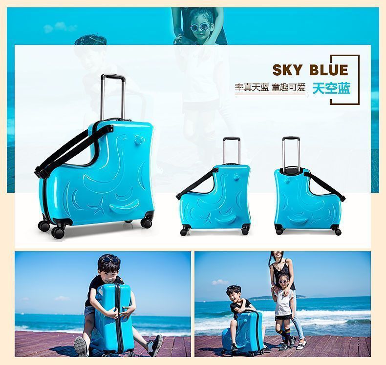• 인기 폭발! 업그레이드된 무광 블루 목마 라이딩 캐리어