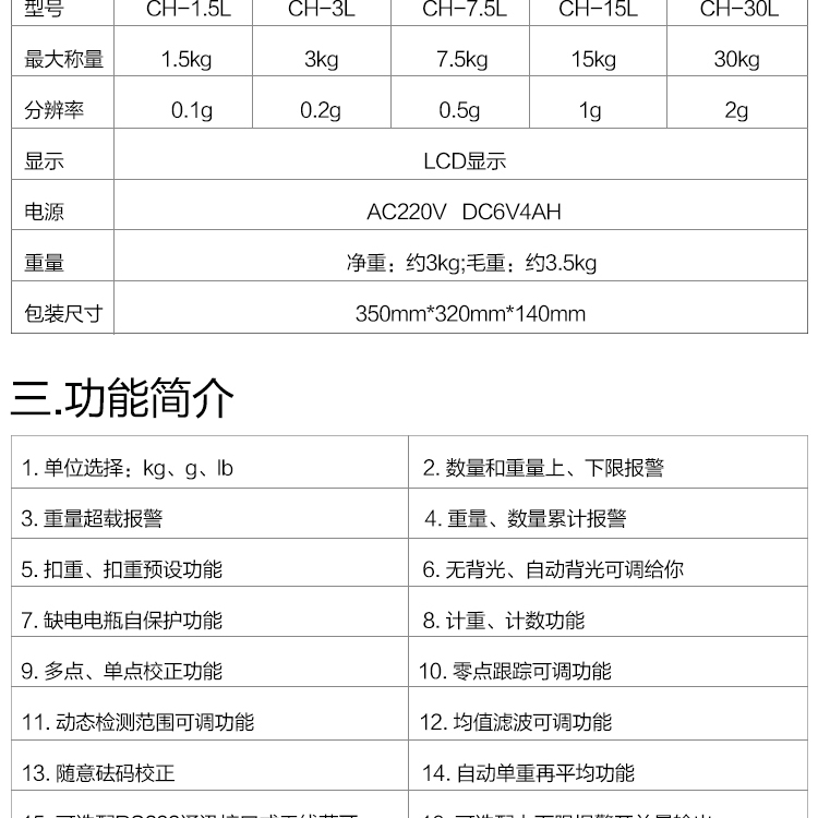 닉스 CH-L 전자 계수 저울의 균형 무게 고정밀 0.1g 산업용 전자 스케일 3/6/15/30kg