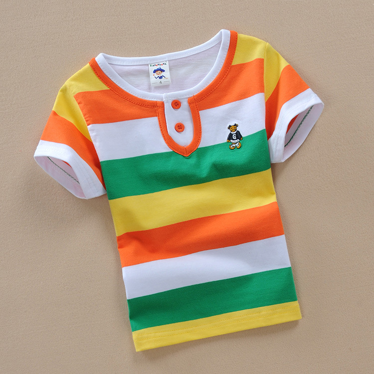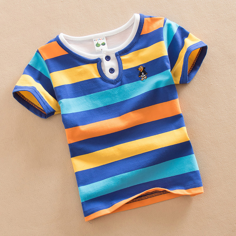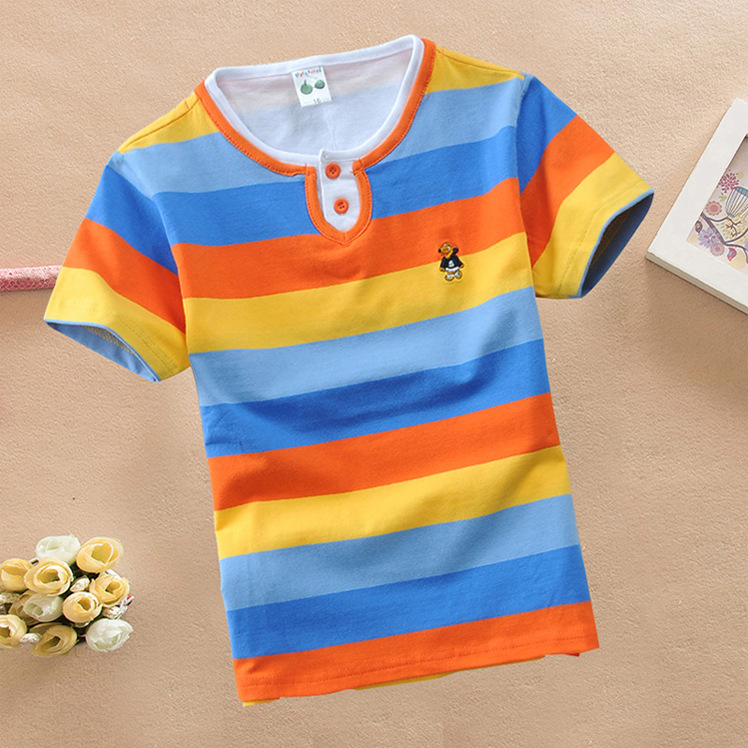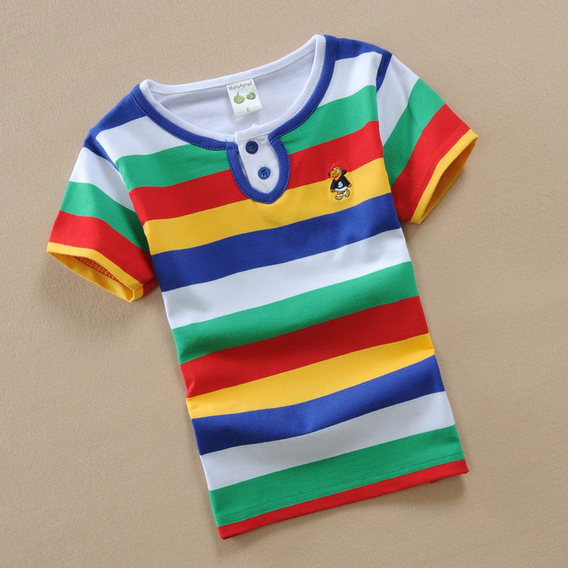 Balabubi 소년과 소녀 어린이 반팔 티셔츠 레인보우 스트립 1-13 세 땀 흡수 티셔츠 중대형 어린이 여름 아동복스토어 가기