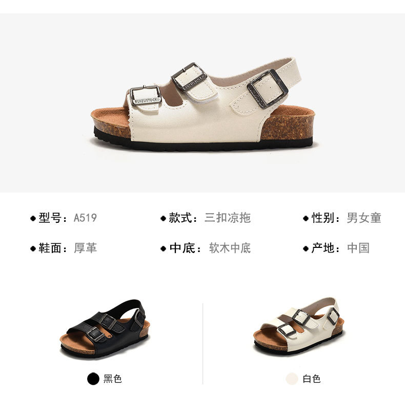 2025 Ruizu 봄과 여름 어린이 코르크 샌들 소년 부모-자식 샌들 소녀 통기성 해변 신발 캐주얼스토어 가기