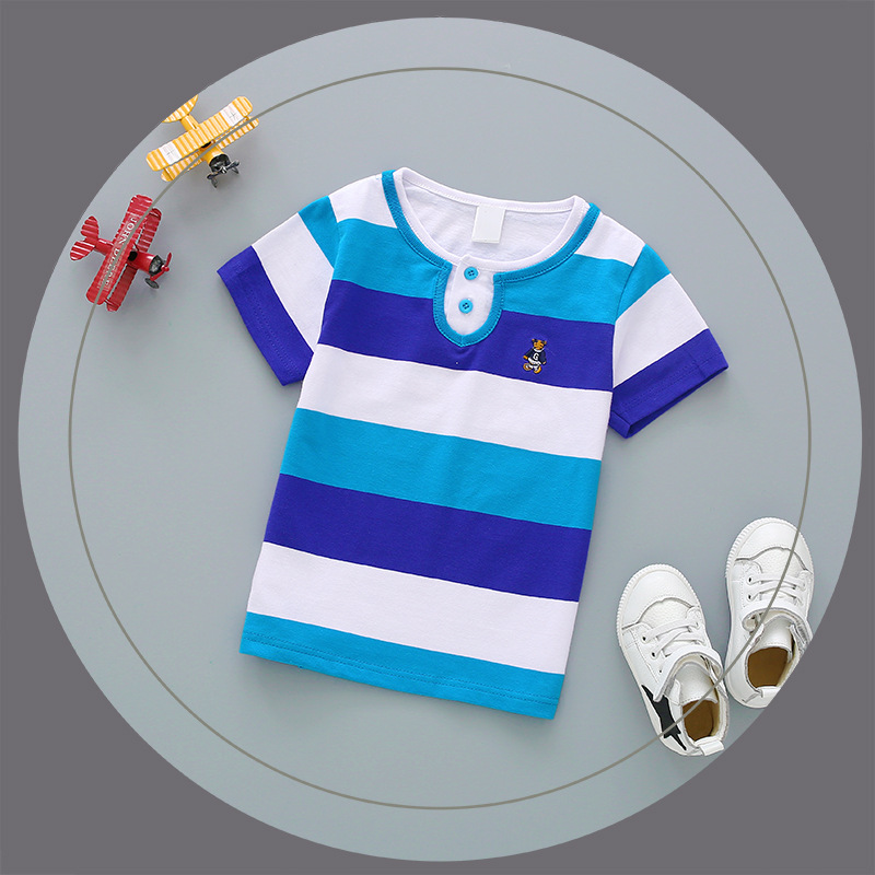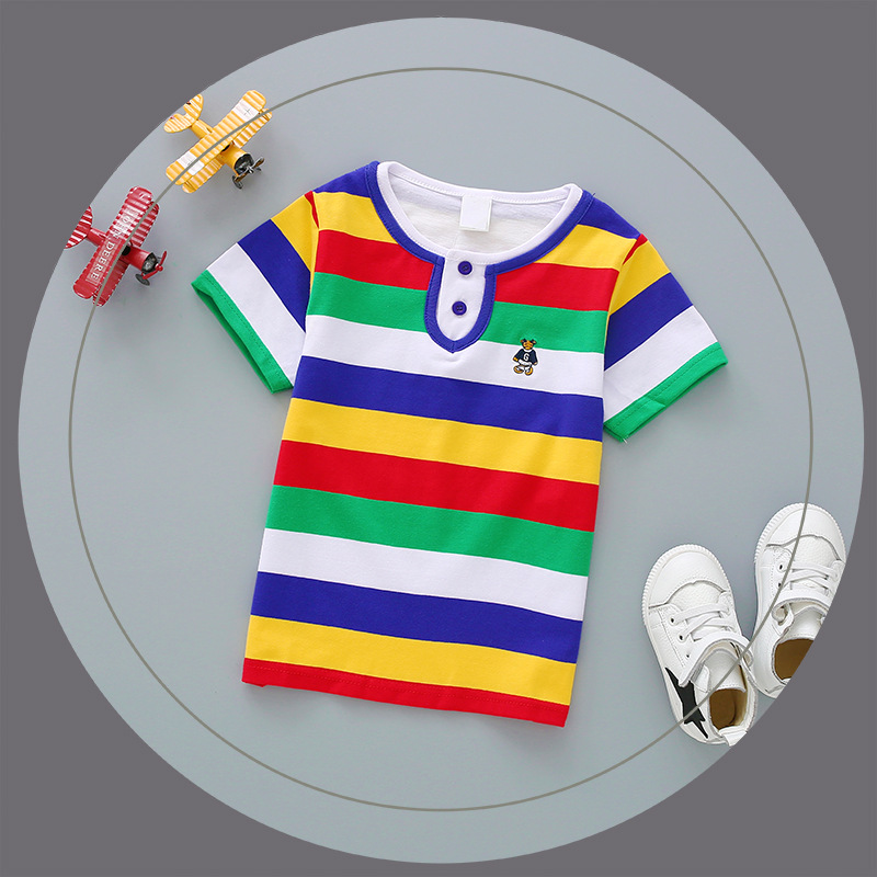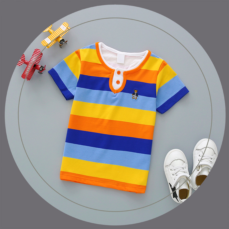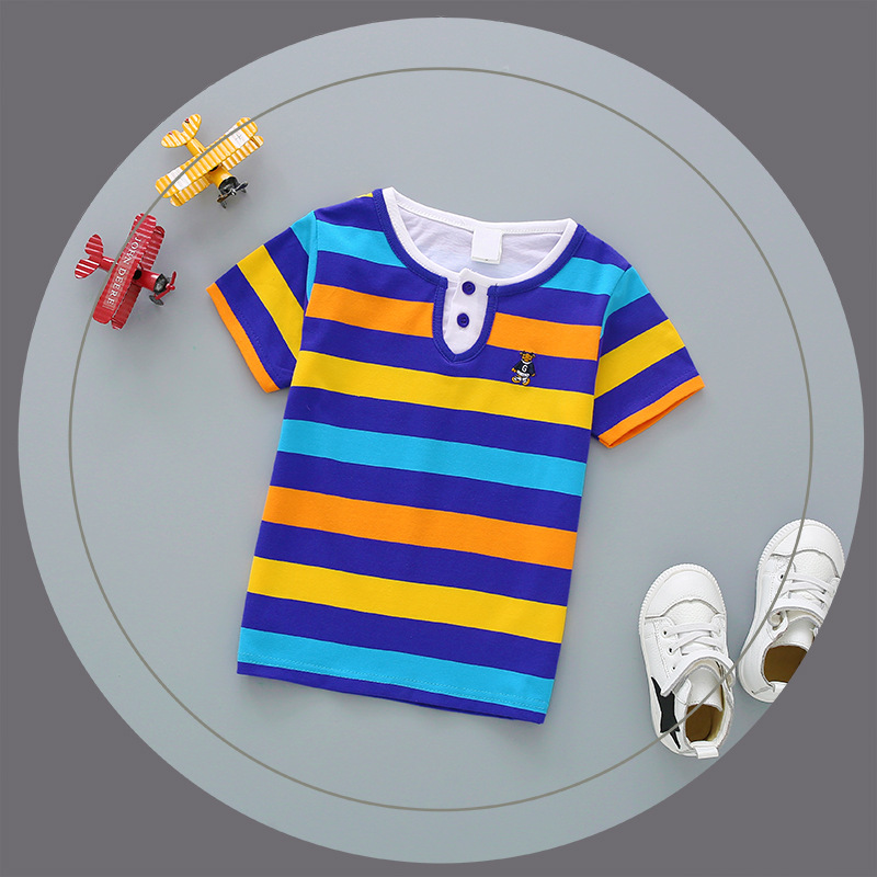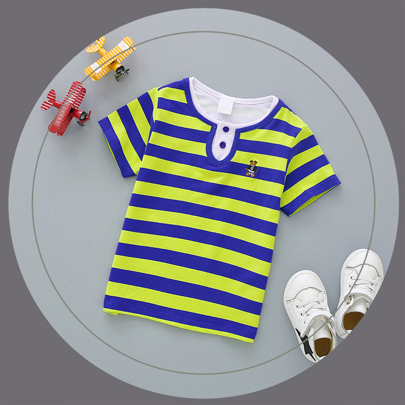 Bala balabobby2023 새로운 티셔츠 대외 무역 남성 및 여성 아동복 여름 순면 스트라이프 반팔 POLO 탑스토어 가기