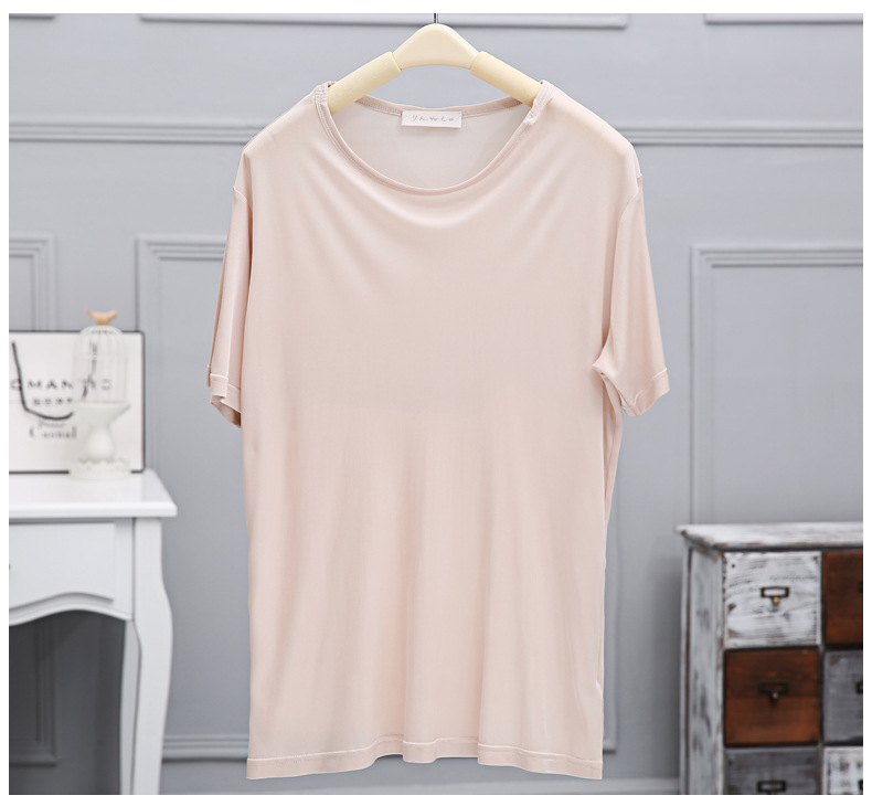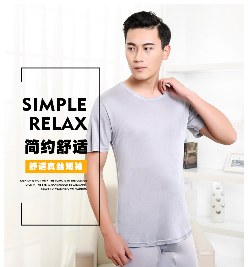 뽕나무 실크 잠옷 남자의 봄과 가을 실크 남자의 가정복 럭셔리 니트 반팔 홈 티셔츠 편안한 티셔츠