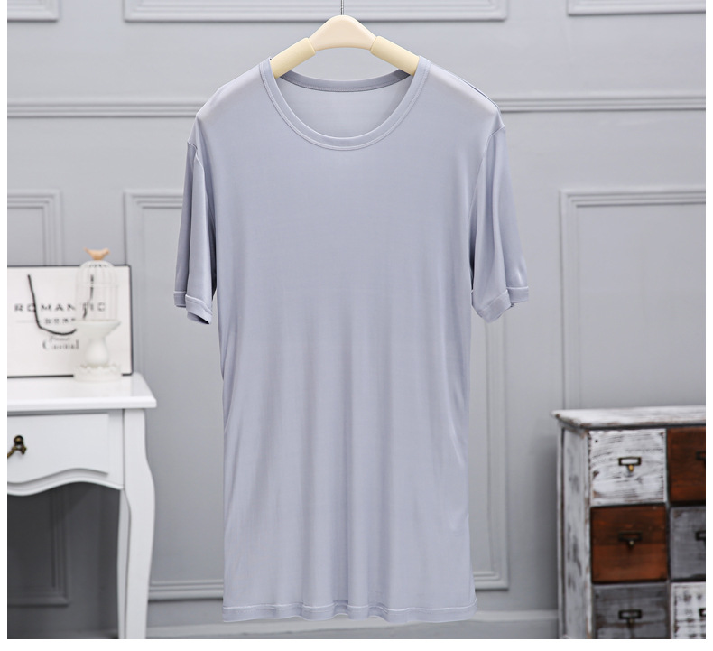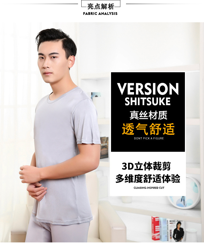뽕나무 실크 잠옷 남자의 봄과 가을 실크 남자의 가정복 럭셔리 니트 반팔 홈 티셔츠 편안한 티셔츠스토어 가기