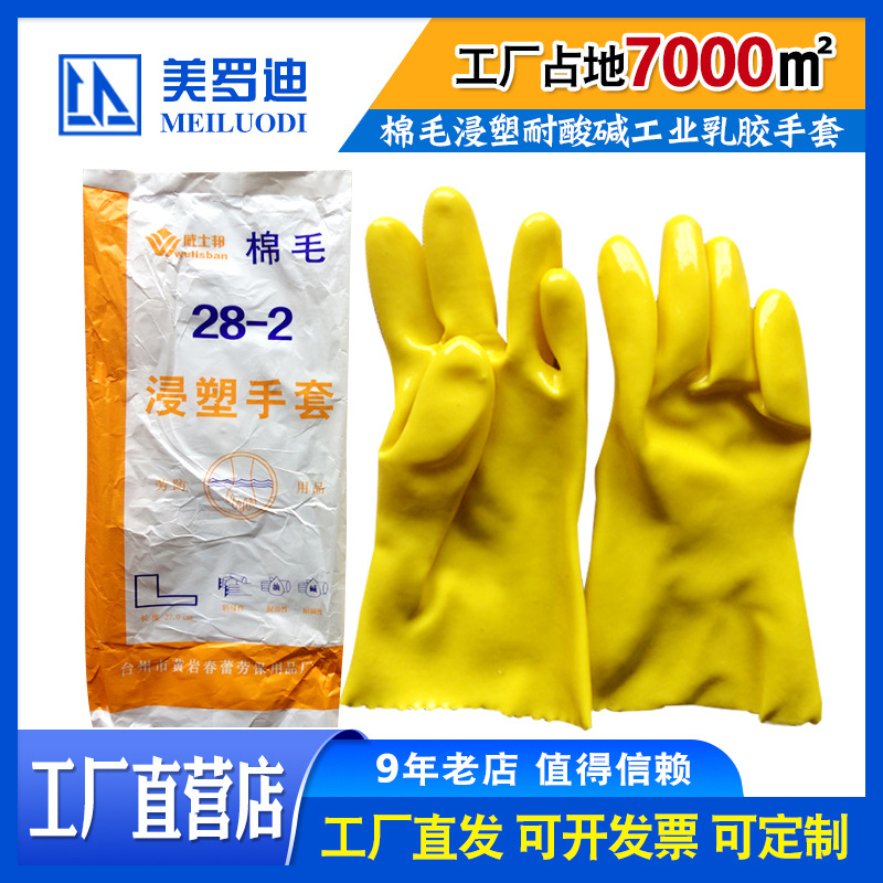 노동 장갑 내마모성 스프링 버드 28-2 면모 딥 장갑 산성 및 알칼리 저항성 오일 및 방수 산업용 라텍스 장갑