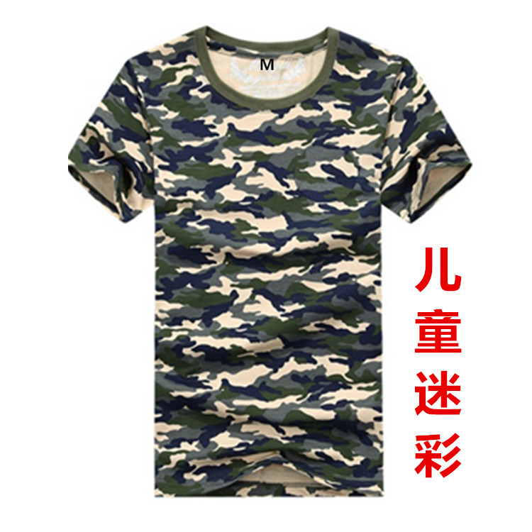 남성과 여성의 티셔츠 어린이 크루넥 반팔 반팔 위장 의류 어린이 군사 훈련 여름베이스 셔츠 어린이 교복 중간 어린이 탑스토어 가기
