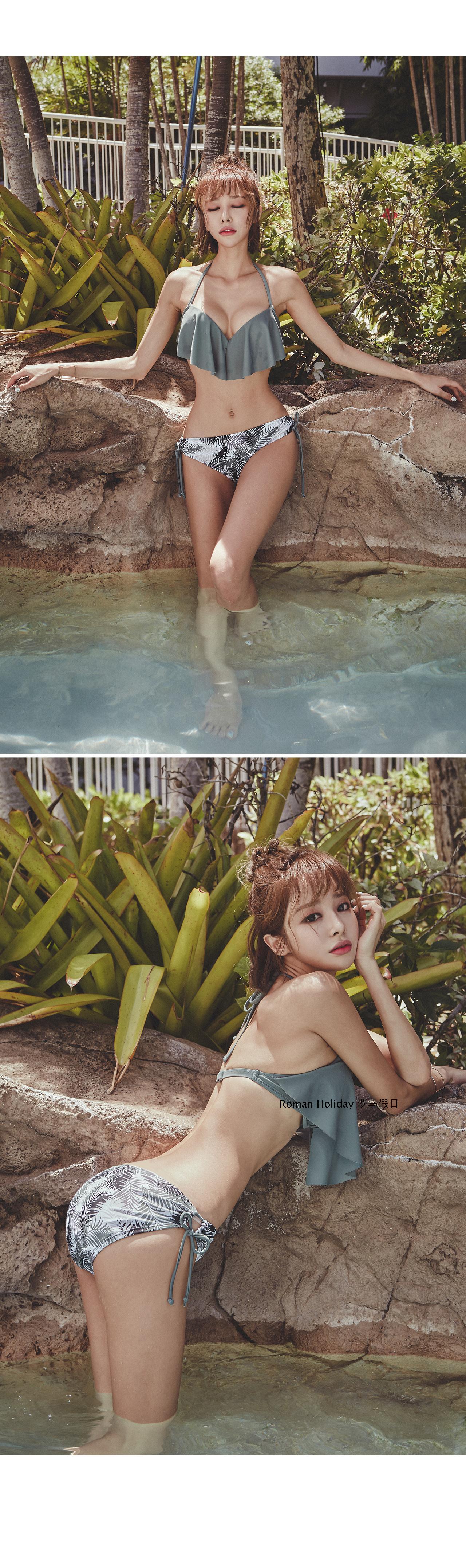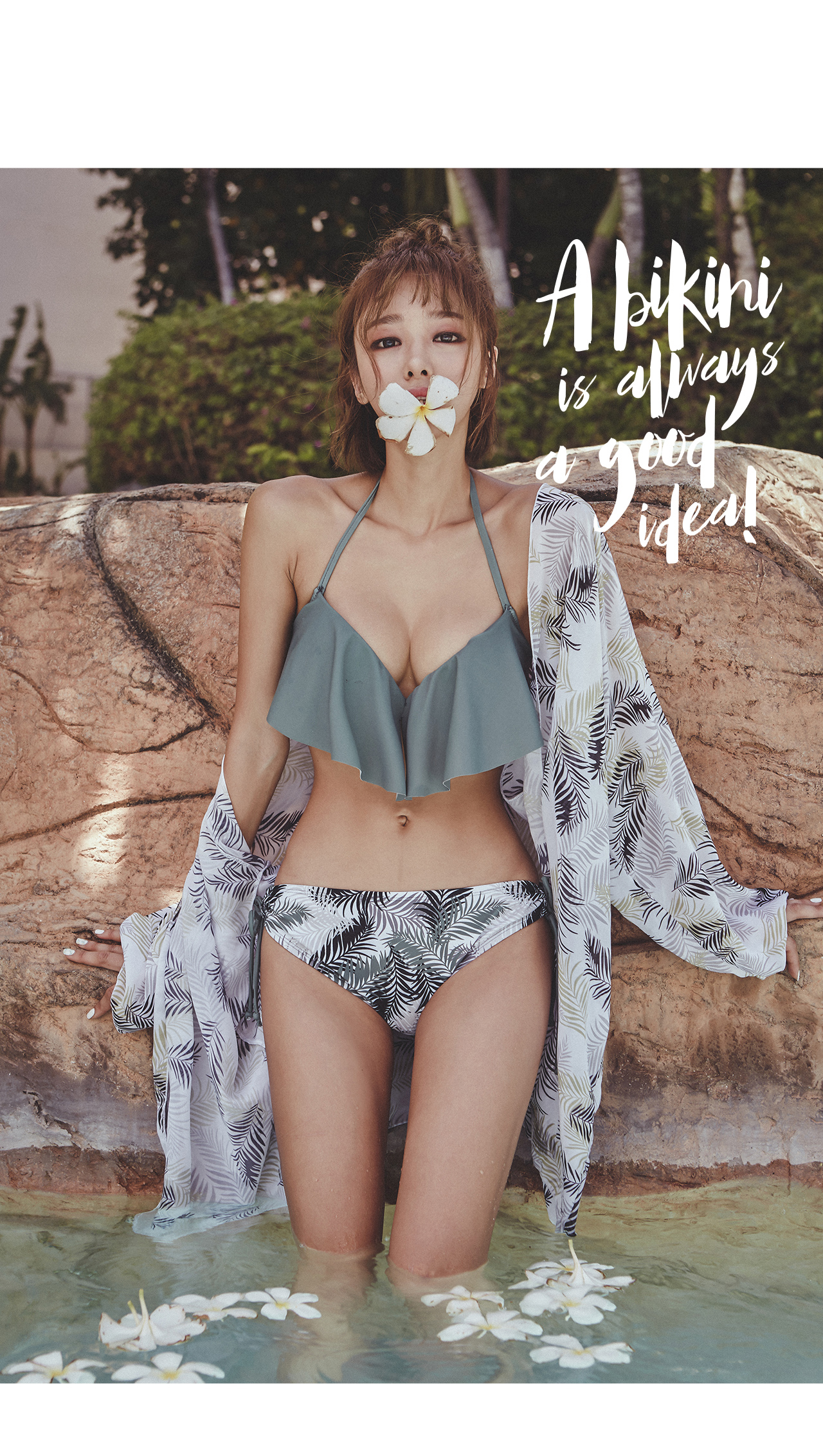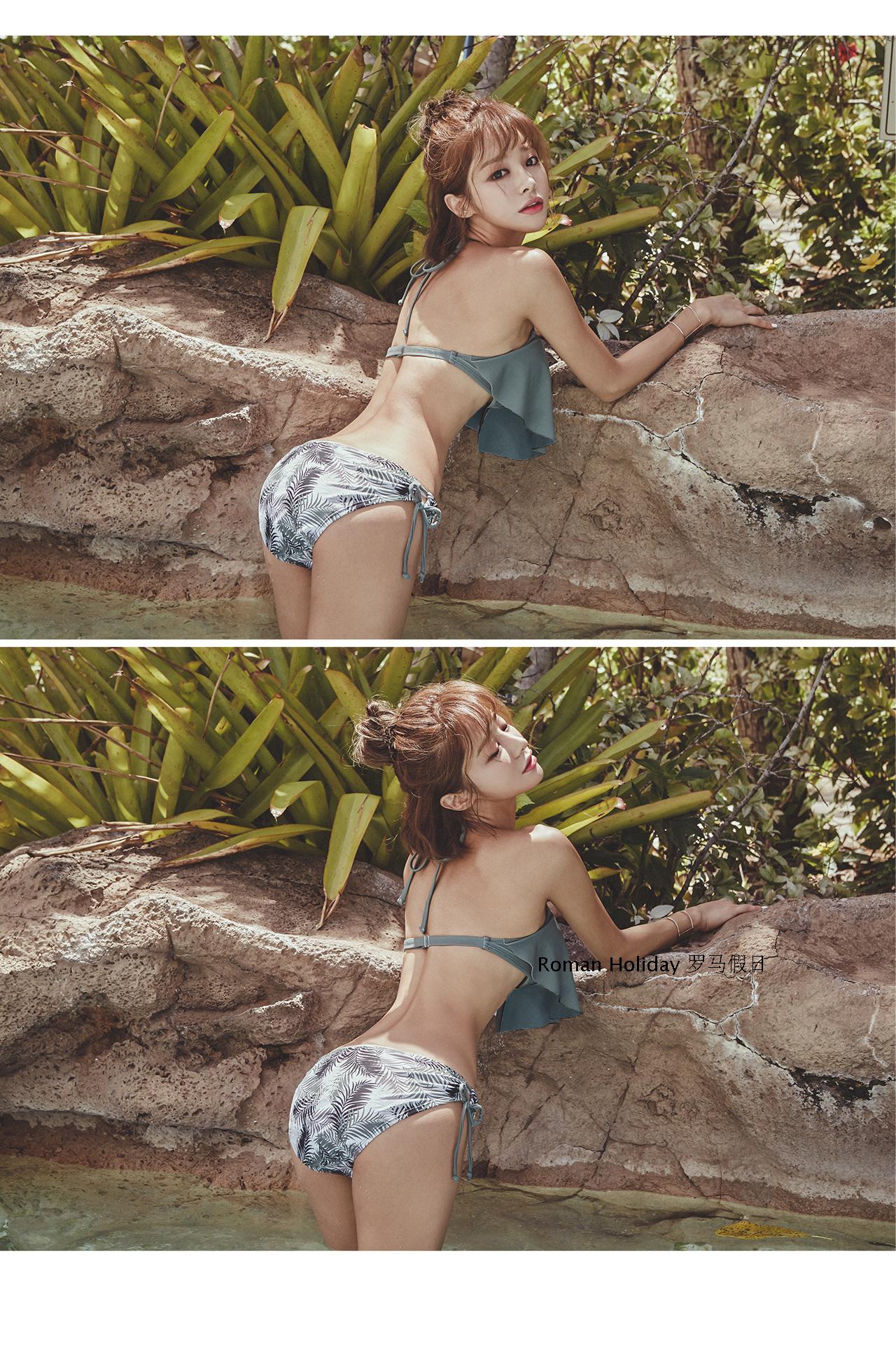 한국 비키니 새로운 블루 그레이 우아한 프릴 푸시 업 가슴 수영복 여성용 쓰리 피스 자외선 차단제 외부 셔츠스토어 가기
