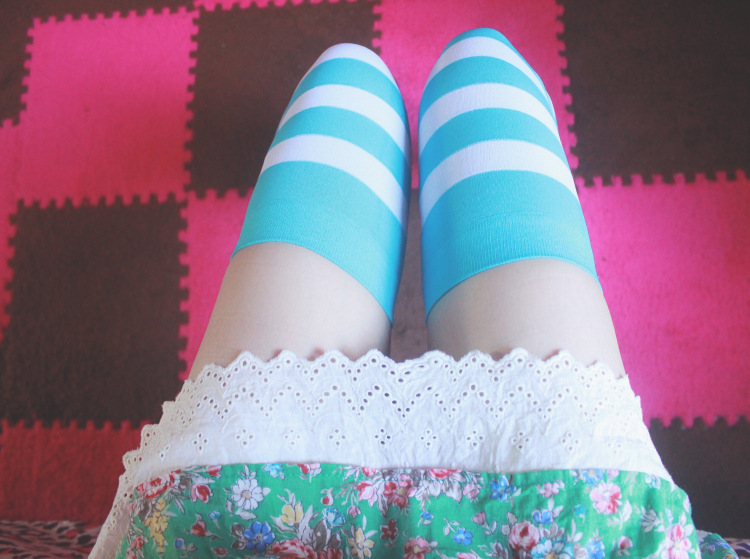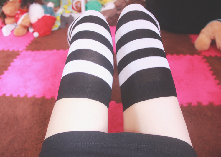 일본 소프트 소녀 키 큰 긴 실크 스타킹 불 침투성 허벅지 스타킹 cos 스타킹 파란색과 흰색 높은 배럴 80cm 벨벳스토어 가기