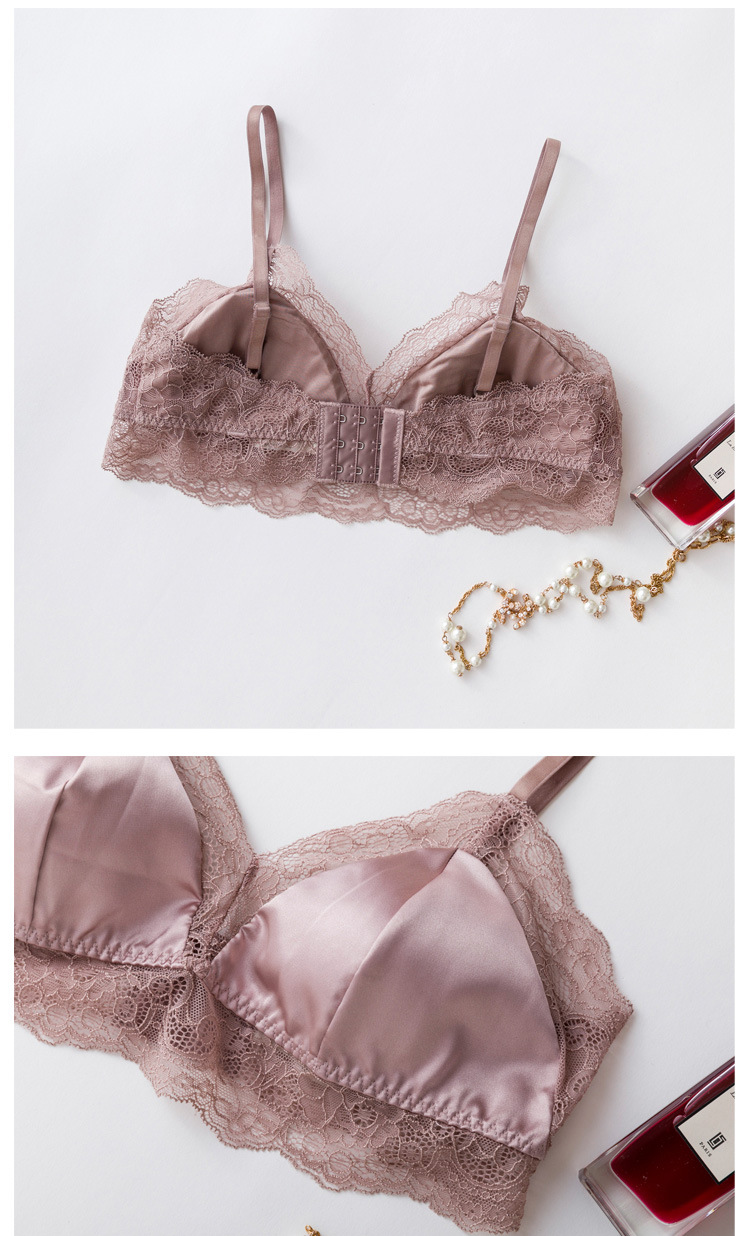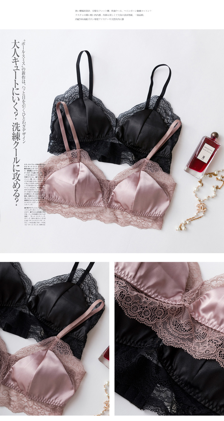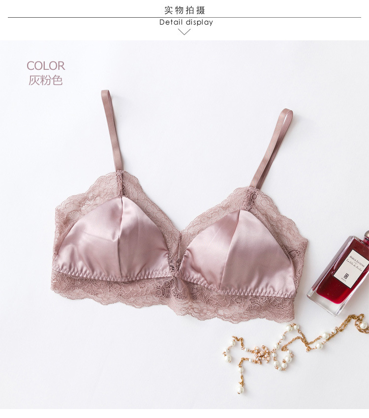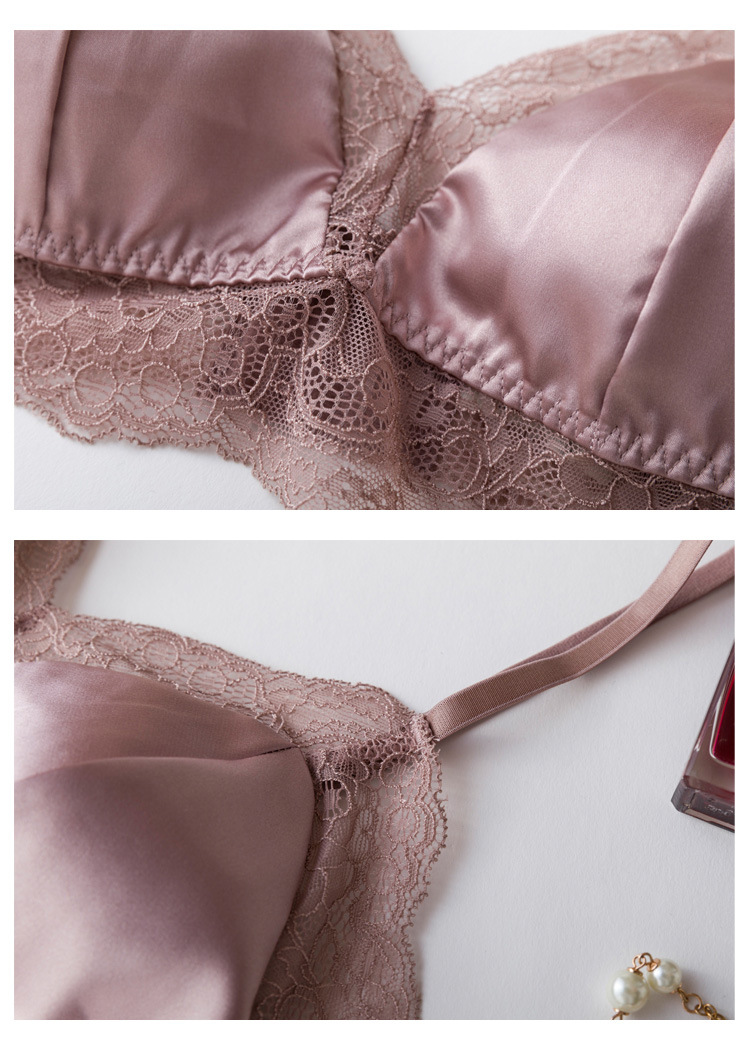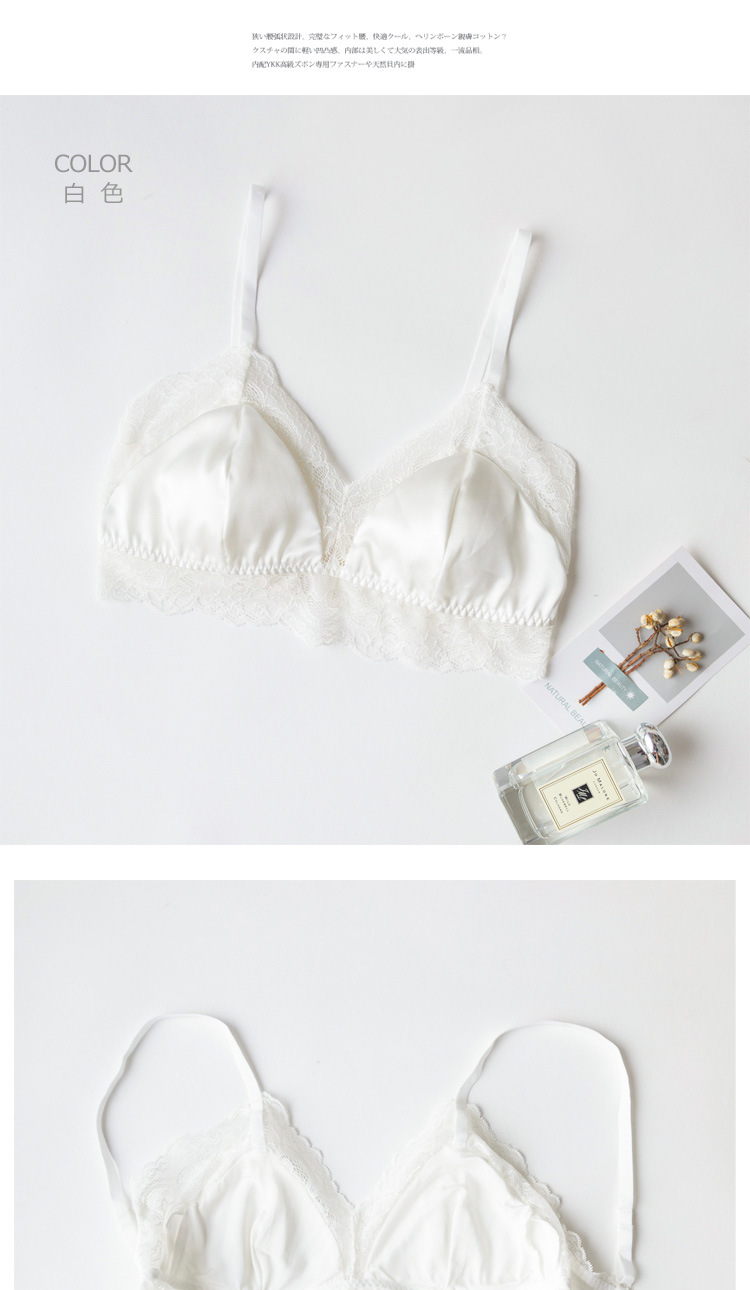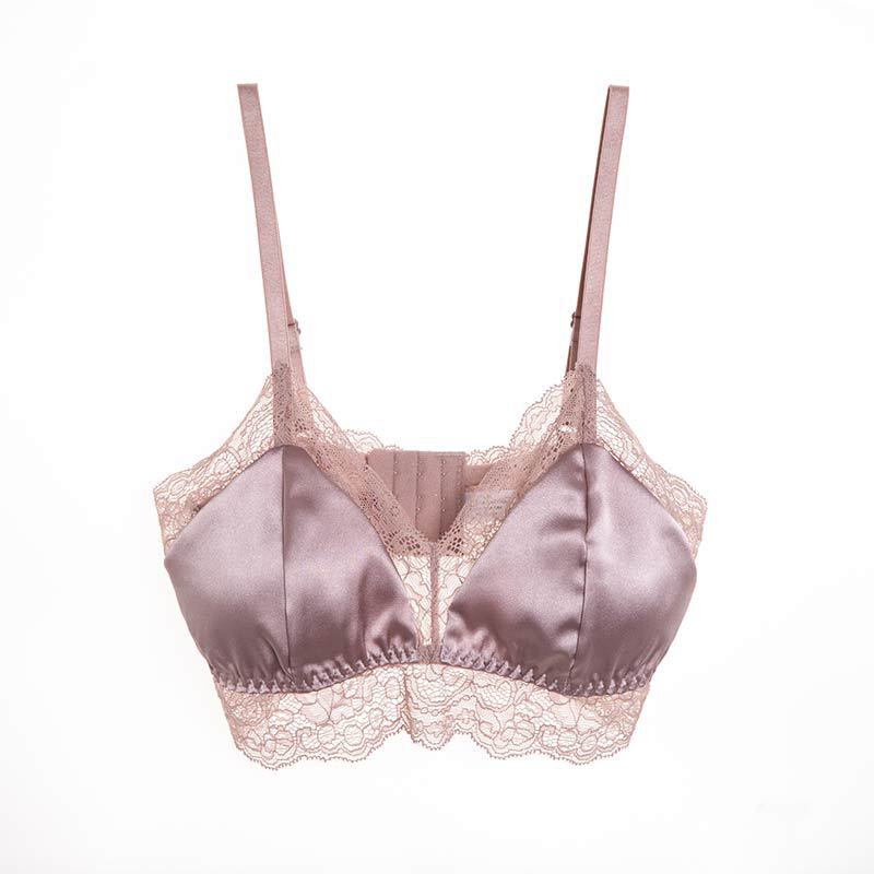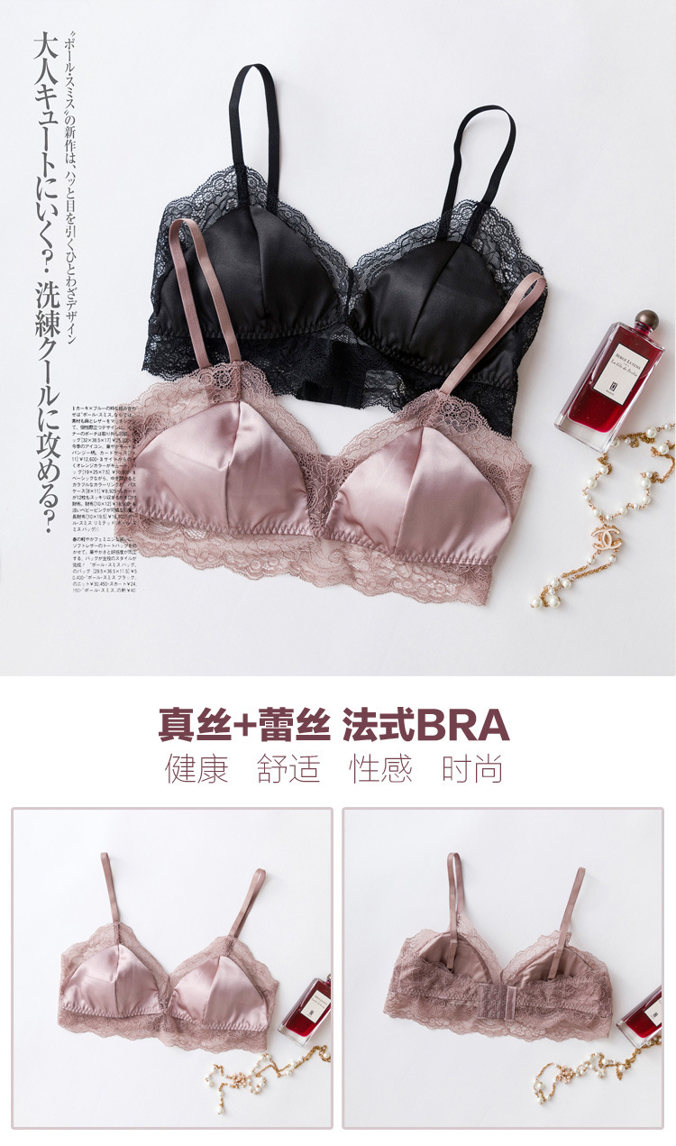탱지 프랑스 스타일 실크 브라 스틸 링 속옷 뽕나무 실크 섹시한 레이스 봄과 여름 얇은 패드