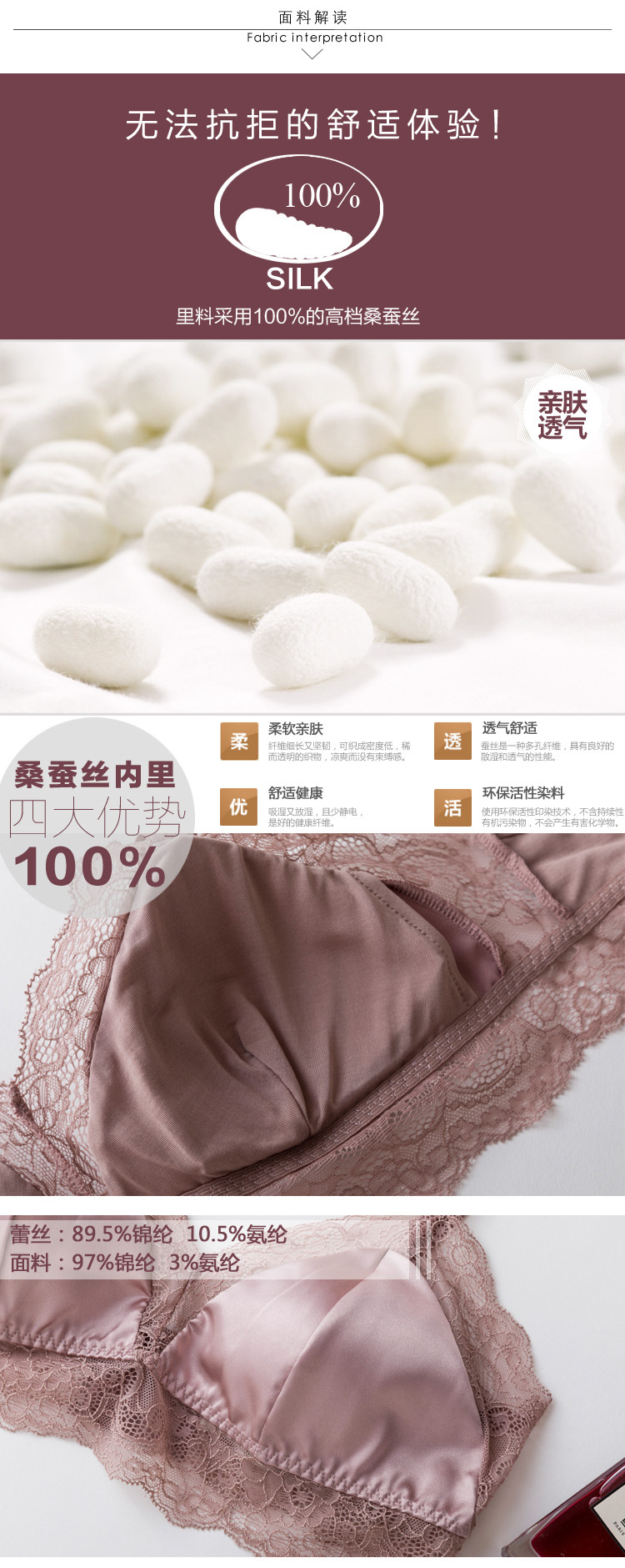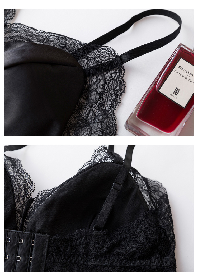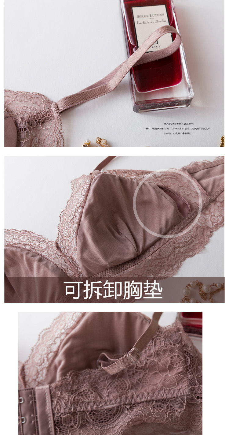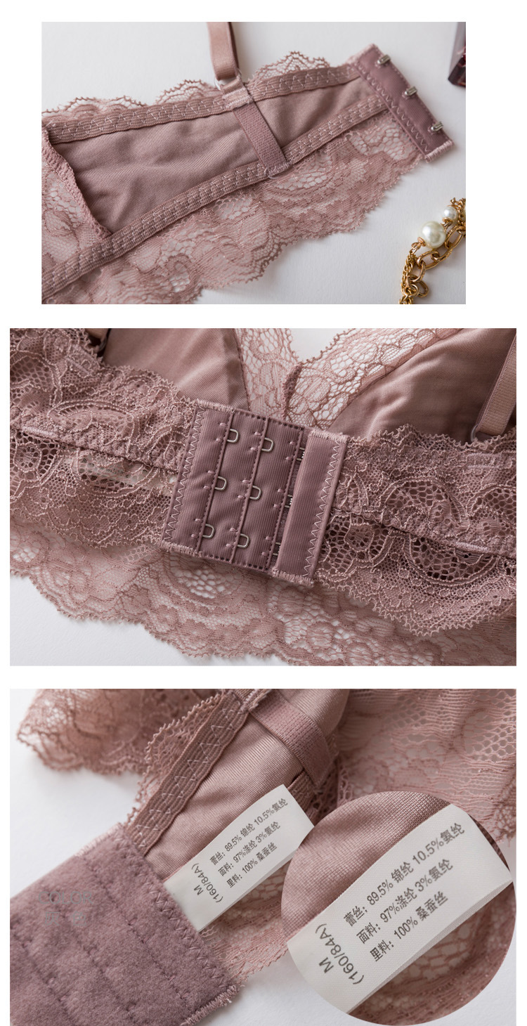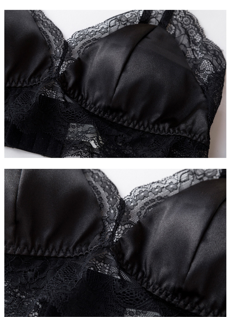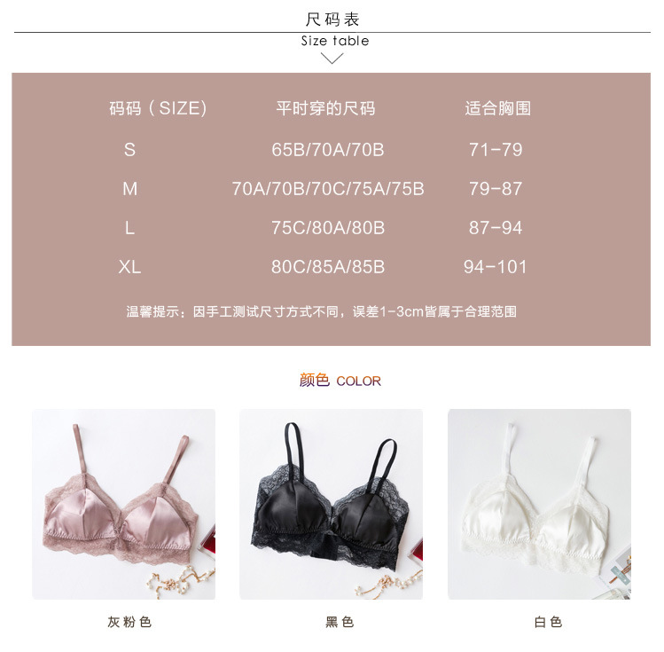 탱지 프랑스 스타일 실크 브라 스틸 링 속옷 뽕나무 실크 섹시한 레이스 봄과 여름 얇은 패드
