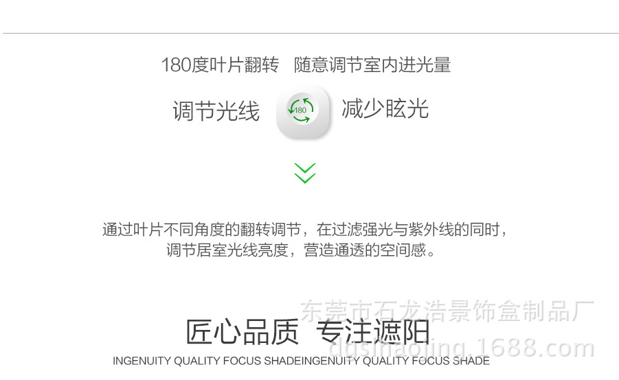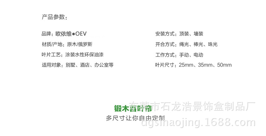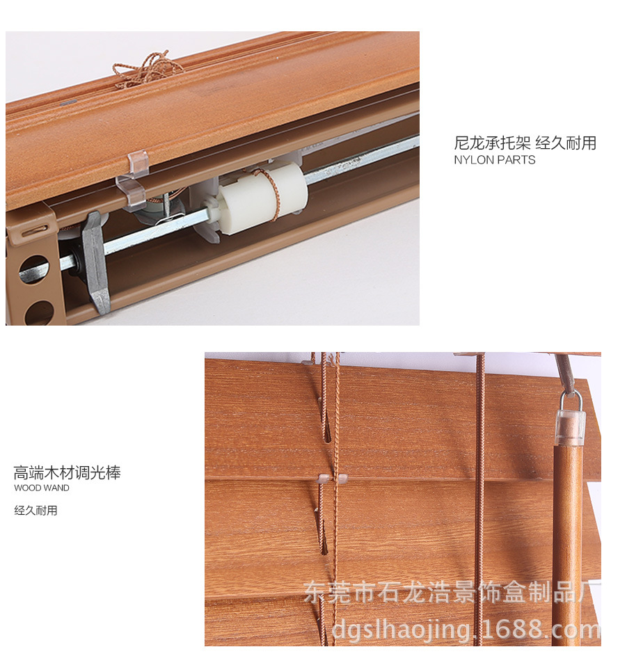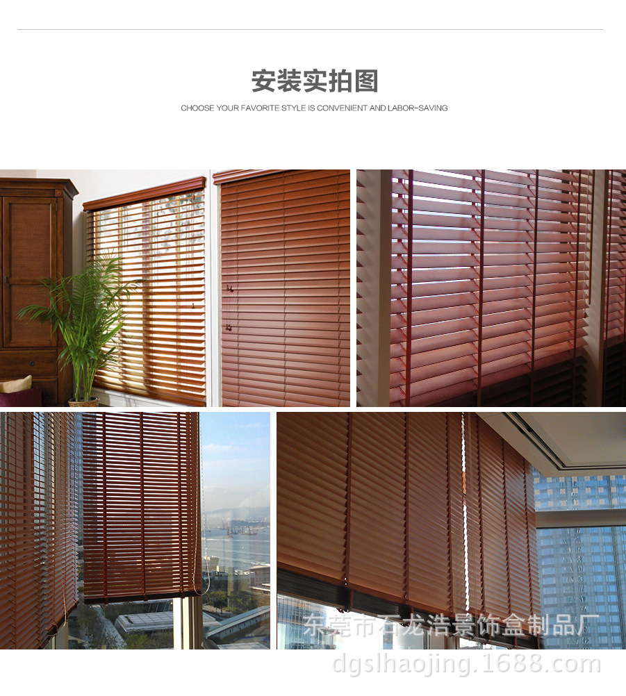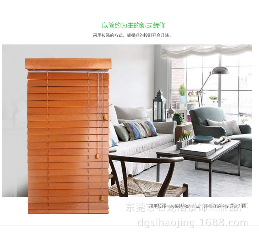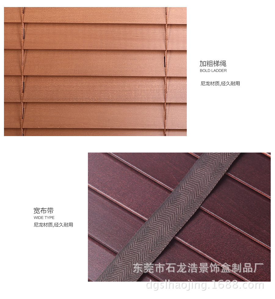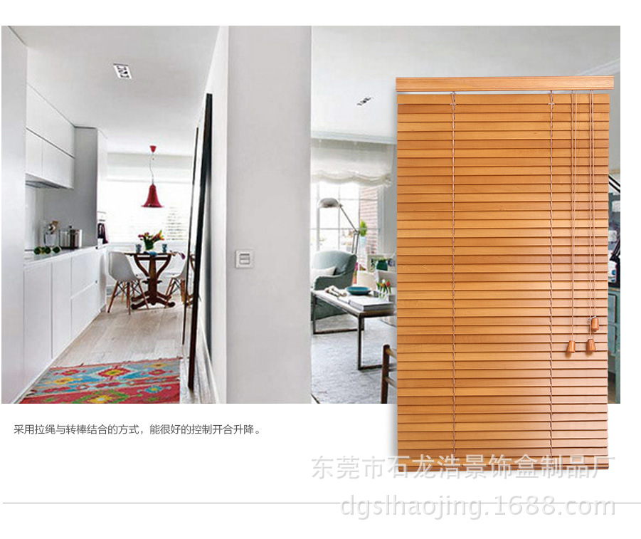 我厂木百叶全部选用进口木材,经高温消毒、防蛀及防霉处理。经多年测试,不易变色、变形。光线透过木纹的折射使室内光线更加柔和 。可透风的特点又可保持室内空气清新。