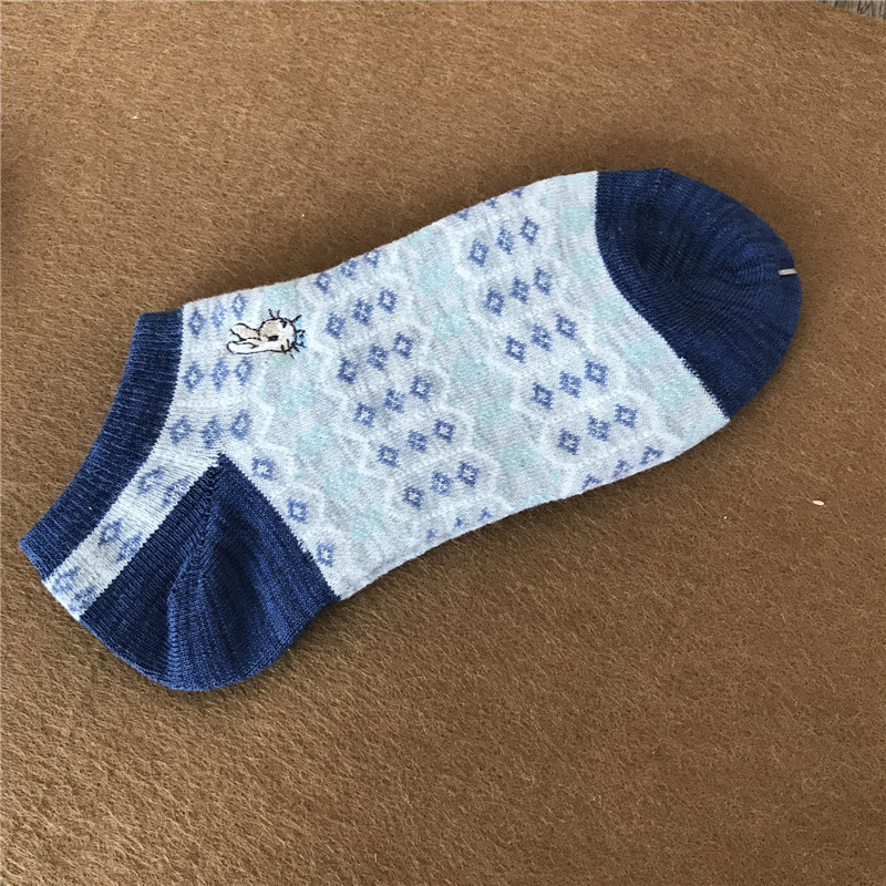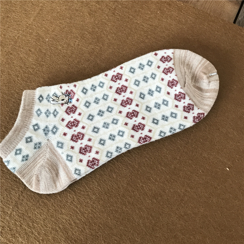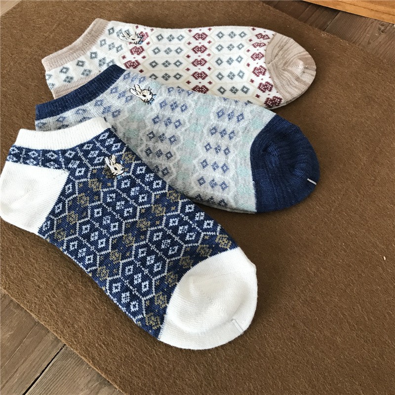 봄과 여름 새로운 일본 삐피 토끼 민족 자카드 면사 여성용 보트 양말 레트로 토템 평행 양말 면 양말스토어 가기