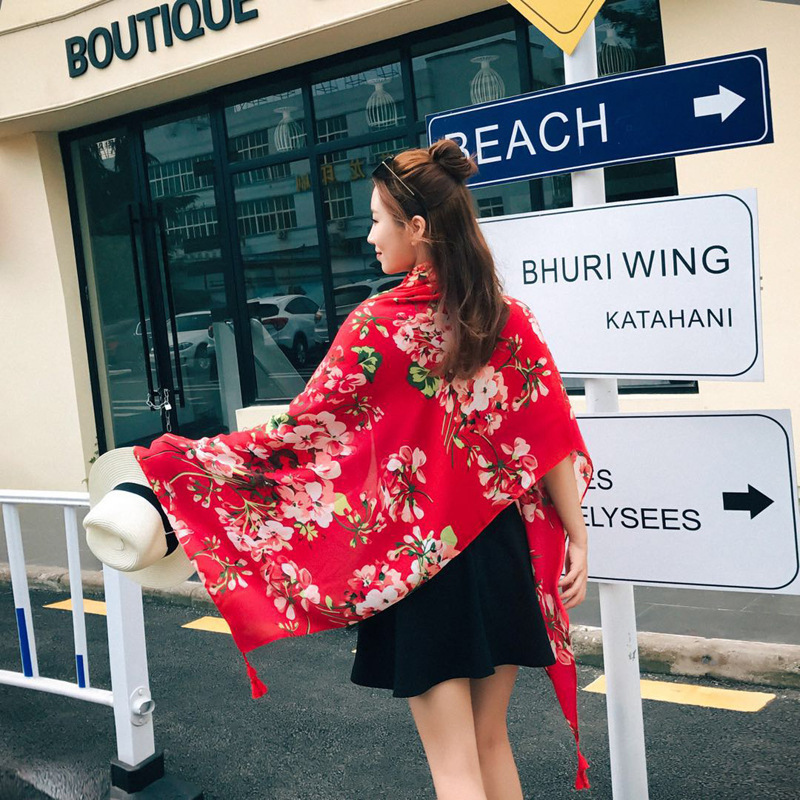 봄과 여름 신면 린넨 스카프 인쇄 여행 선 스크린 타월 선 스크린 숄 확장 에어컨 실크 스카프 비치 타월