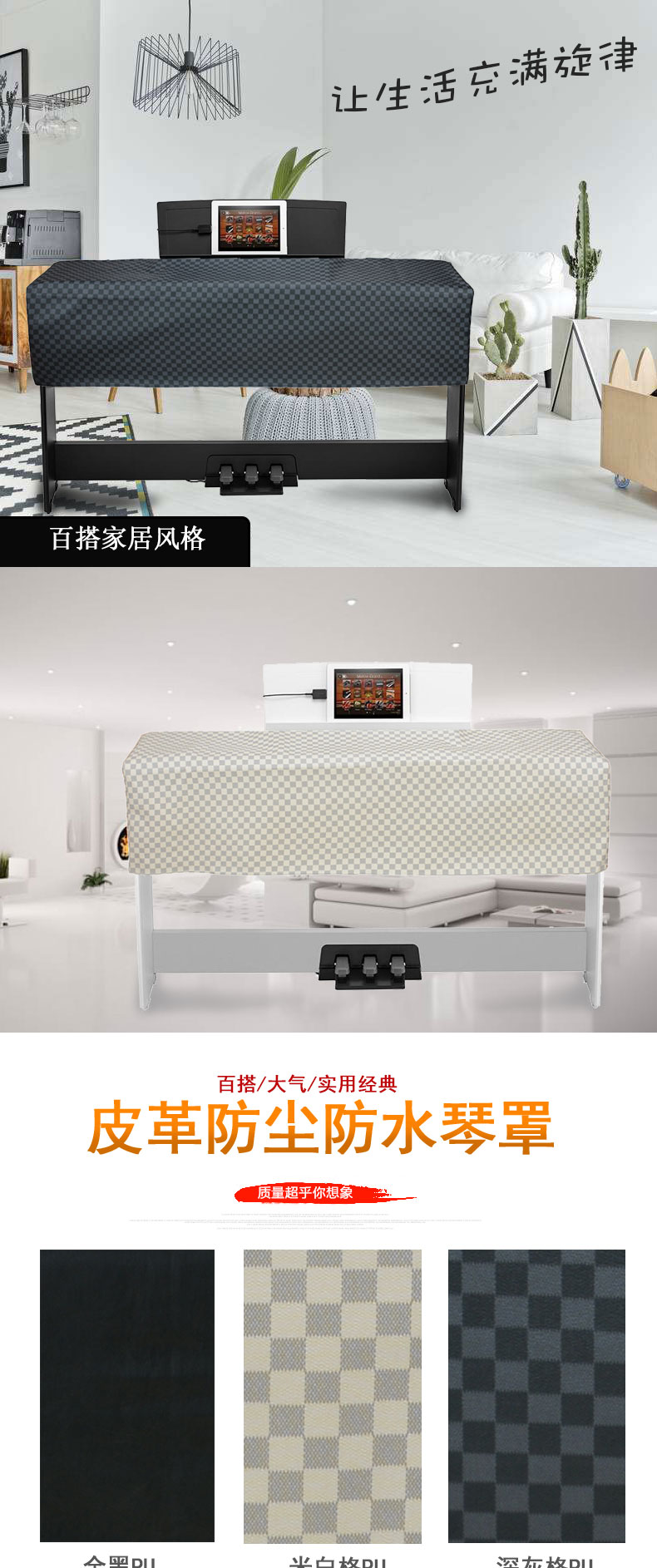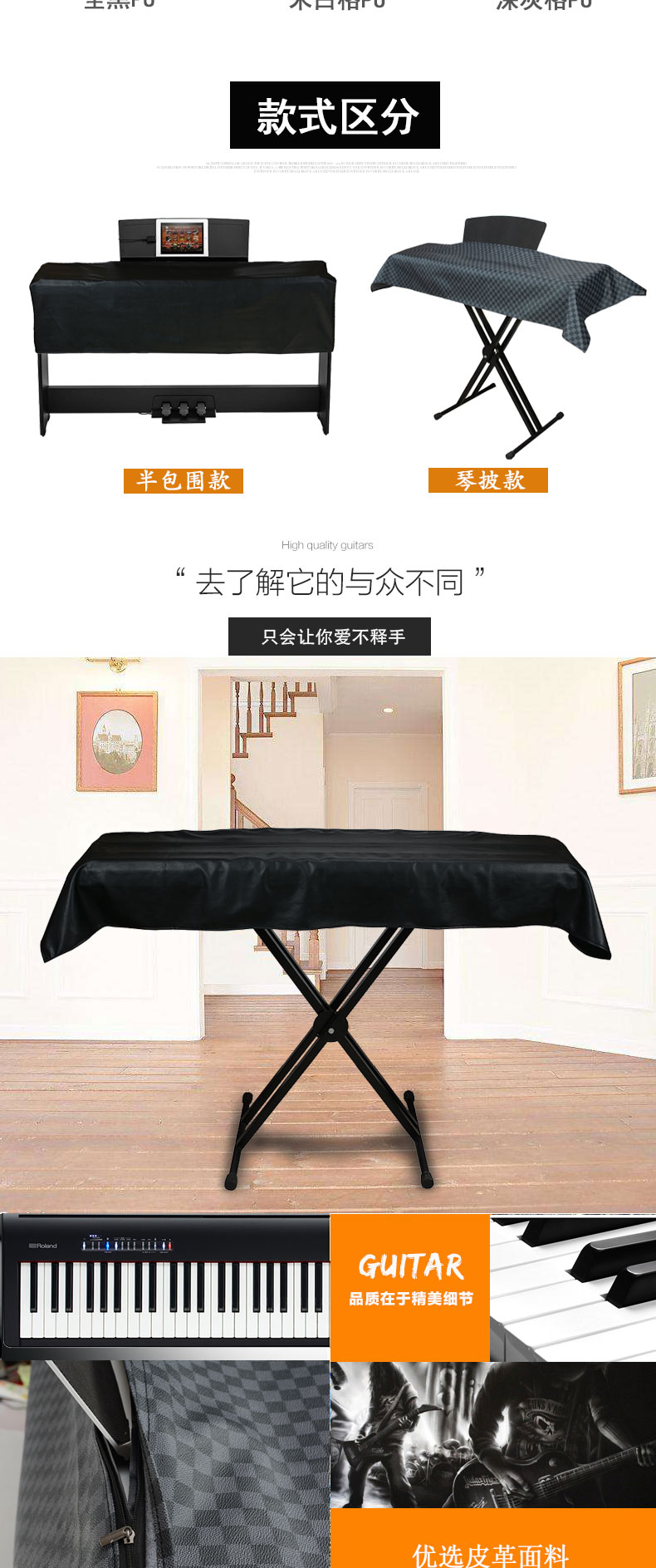 PU 격자 무늬 디지털 일렉트릭 피아노 커버 88 키 전자 피아노 커버 피아노 커버 안티 그레이 오픈 스펙트럼 페이스 악기 커버 가죽스토어 가기