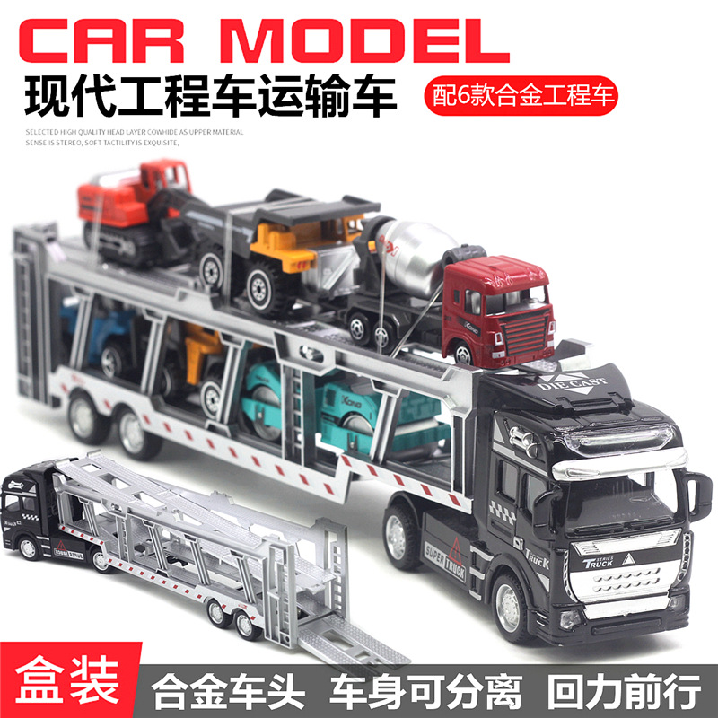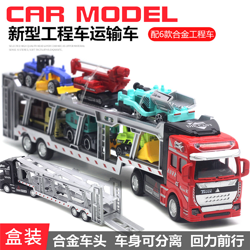 【商品名称】1:48合金工程车运输车带6款合金工程车套装