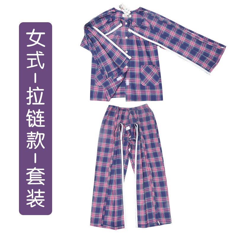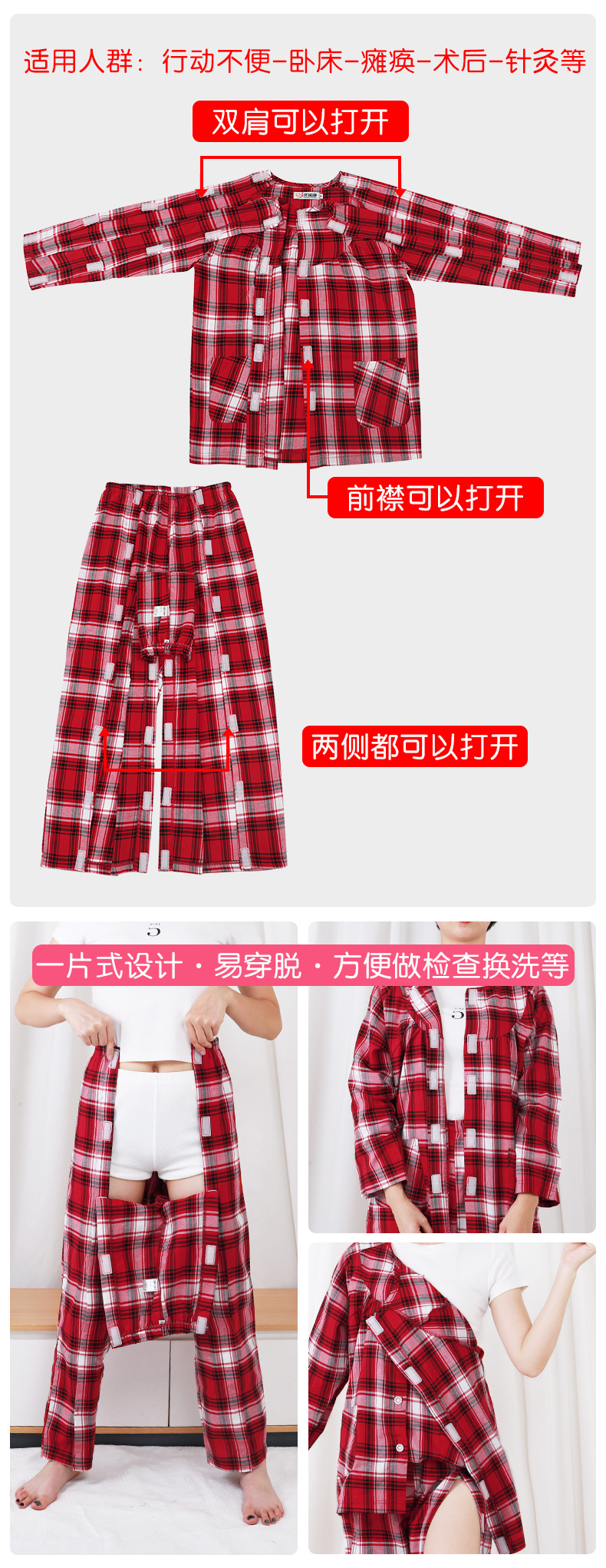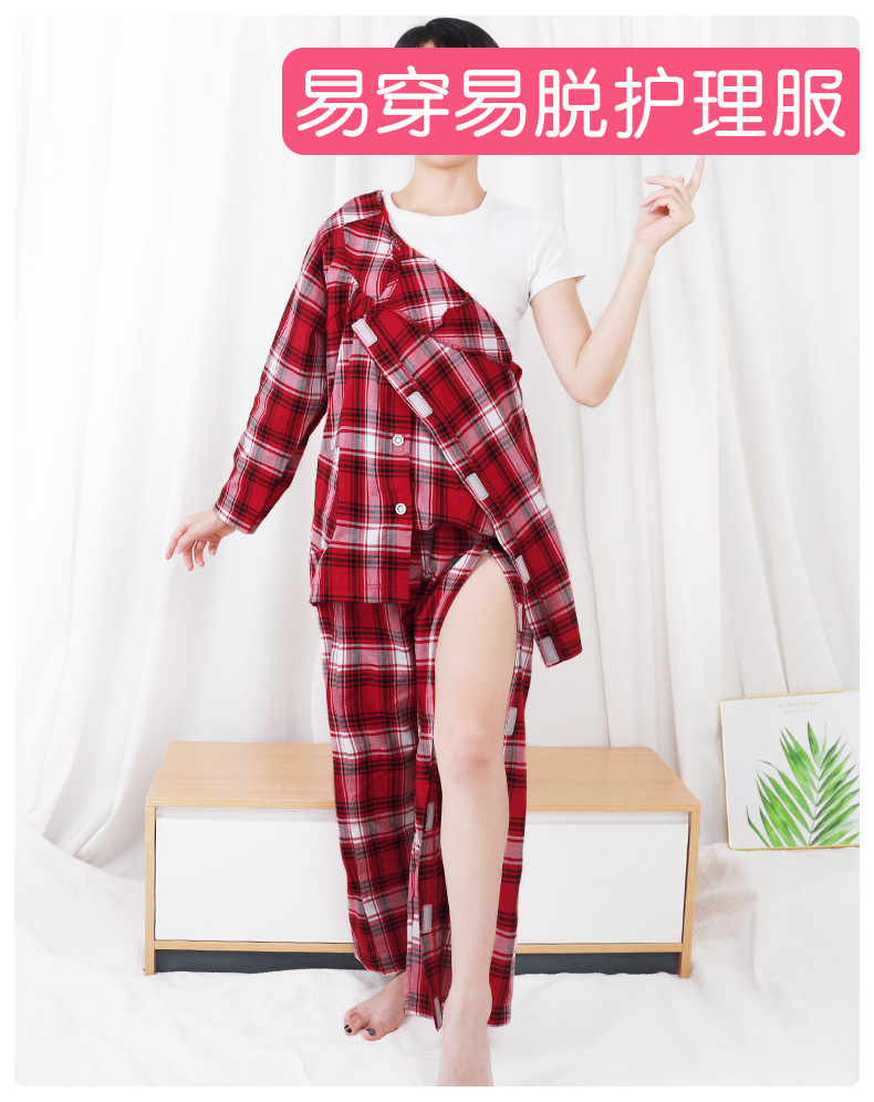 골절 수술 후 환자를위한 착용 및 이륙이 쉬운 간호 복 장기 침대 마비 노인을위한 잠옷 홈 의류 봄과 여름 면스토어 가기