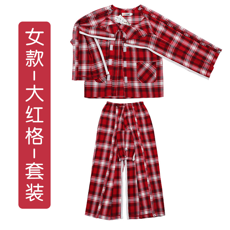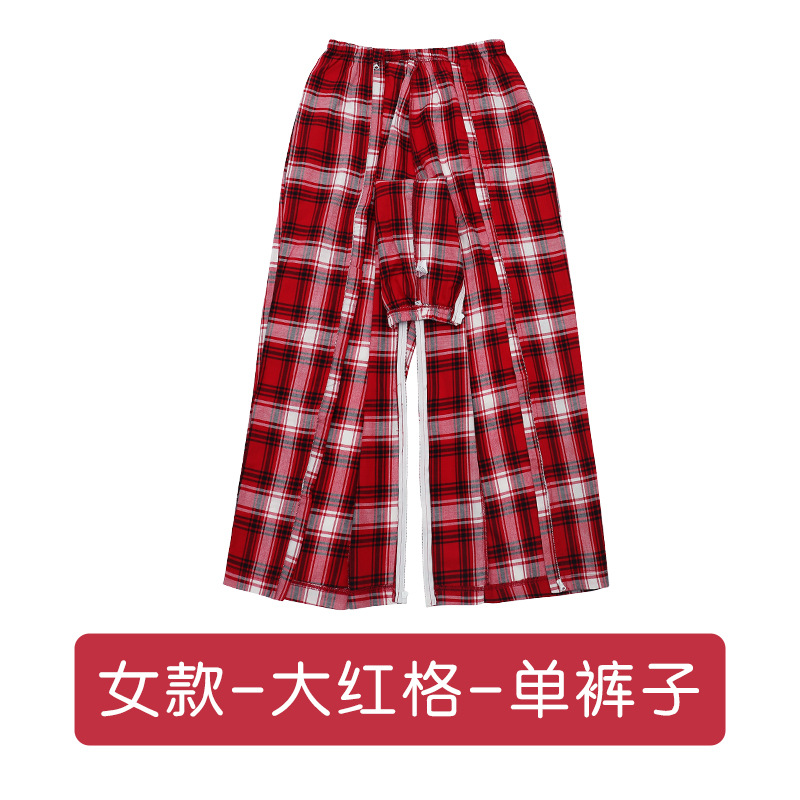 • JRK-901K 빨간 격자 무늬 남성 벨크로 싱글 바지