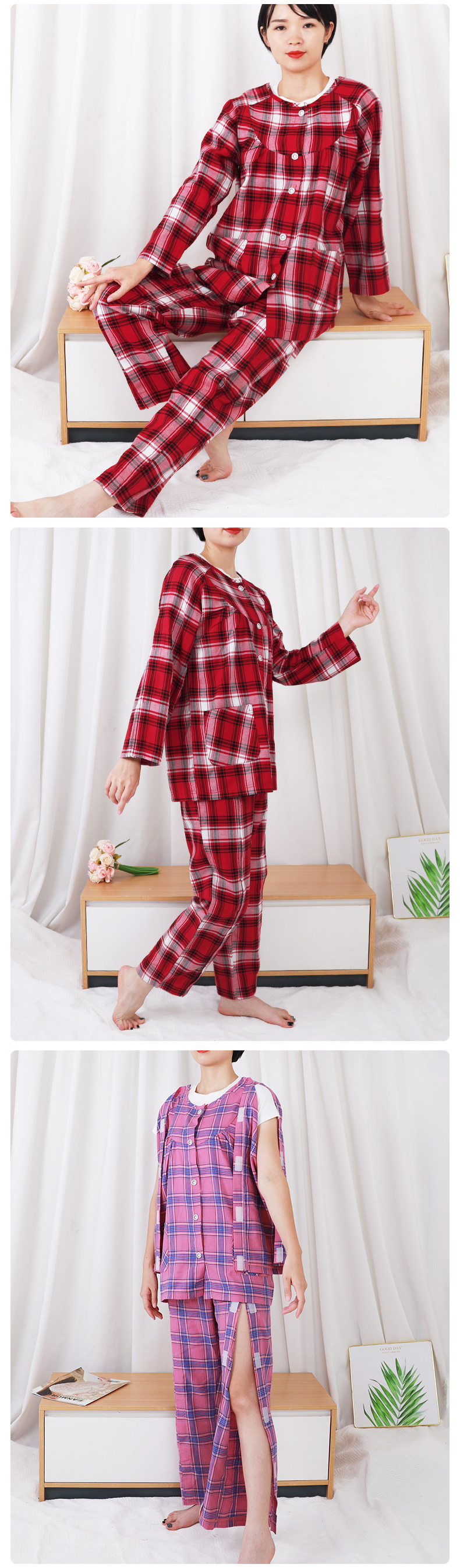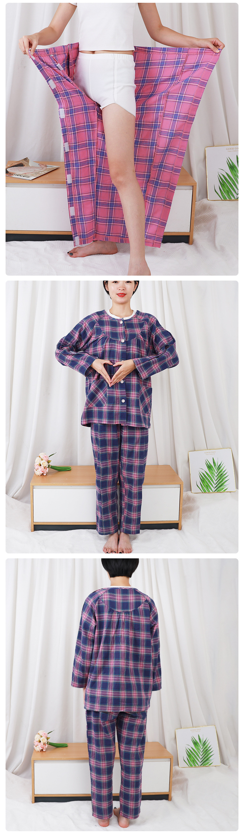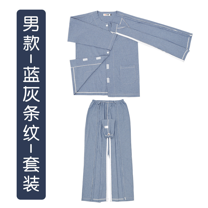 골절 수술 후 환자를위한 착용 및 이륙이 쉬운 간호 복 장기 침대 마비 노인을위한 잠옷 홈 의류 봄과 여름 면