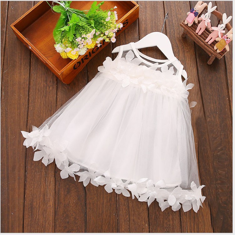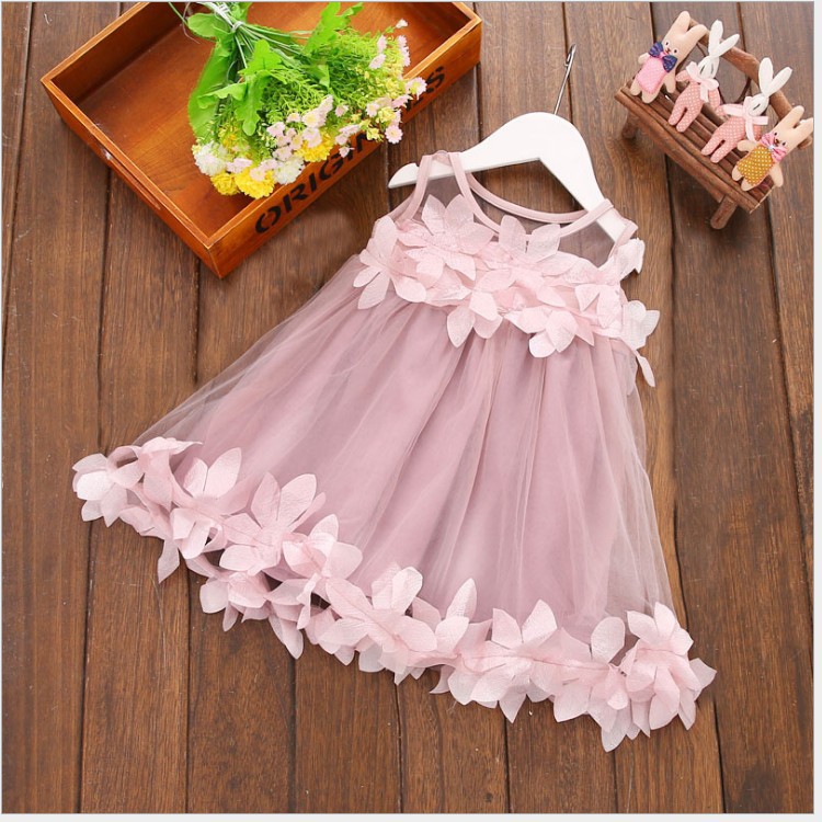 2023 어린이 치마 여름 단색 큰 꽃잎 민소매 메쉬 원피스 대외 무역 어린이 치마 도매의 한국어 버전스토어 가기