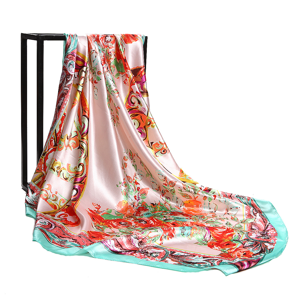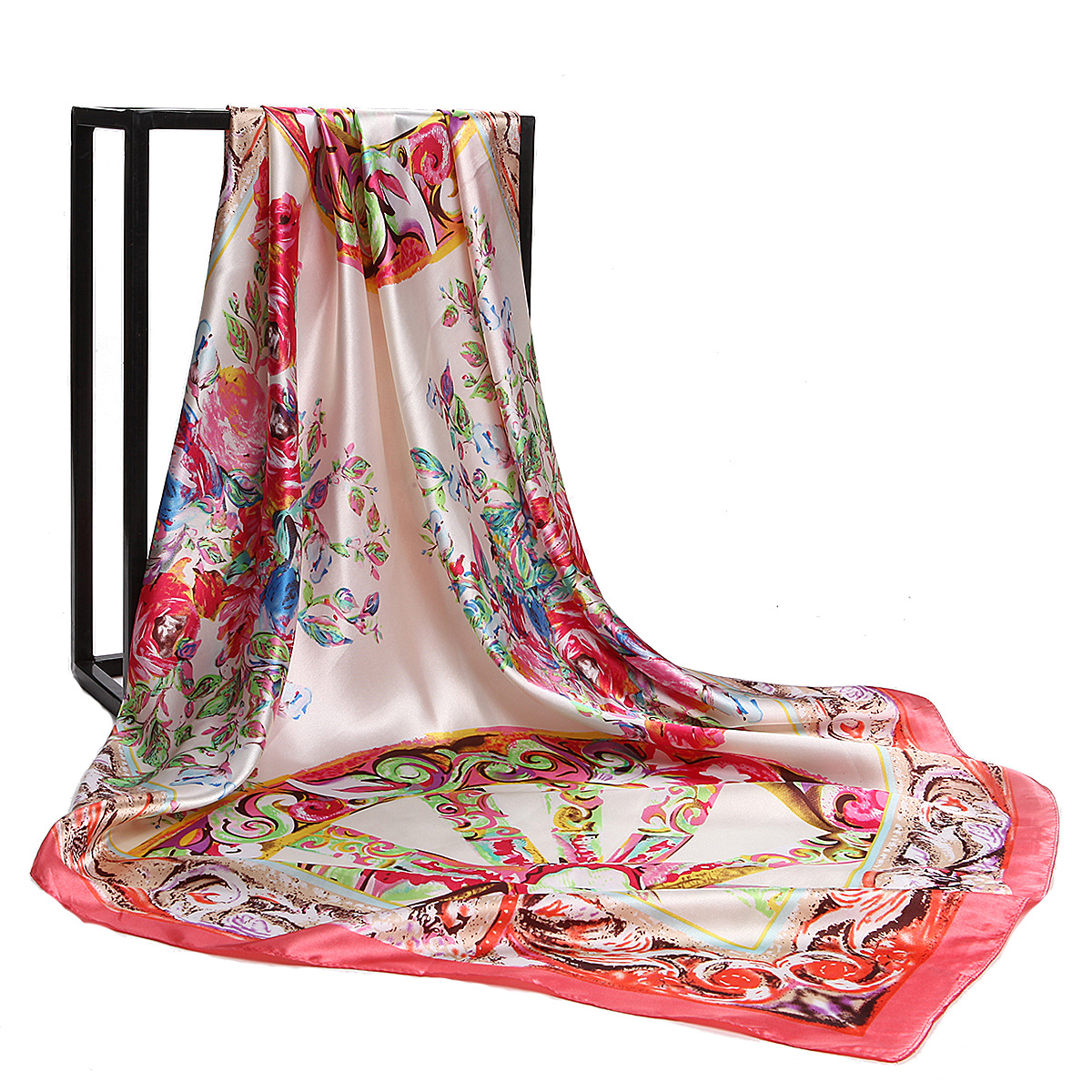 Gaohe 새로운 휠 꽃 여성의 인공 실크 대형 스퀘어 스카프 실크 스카프 90cm * 90cm AliExpress 소원스토어 가기