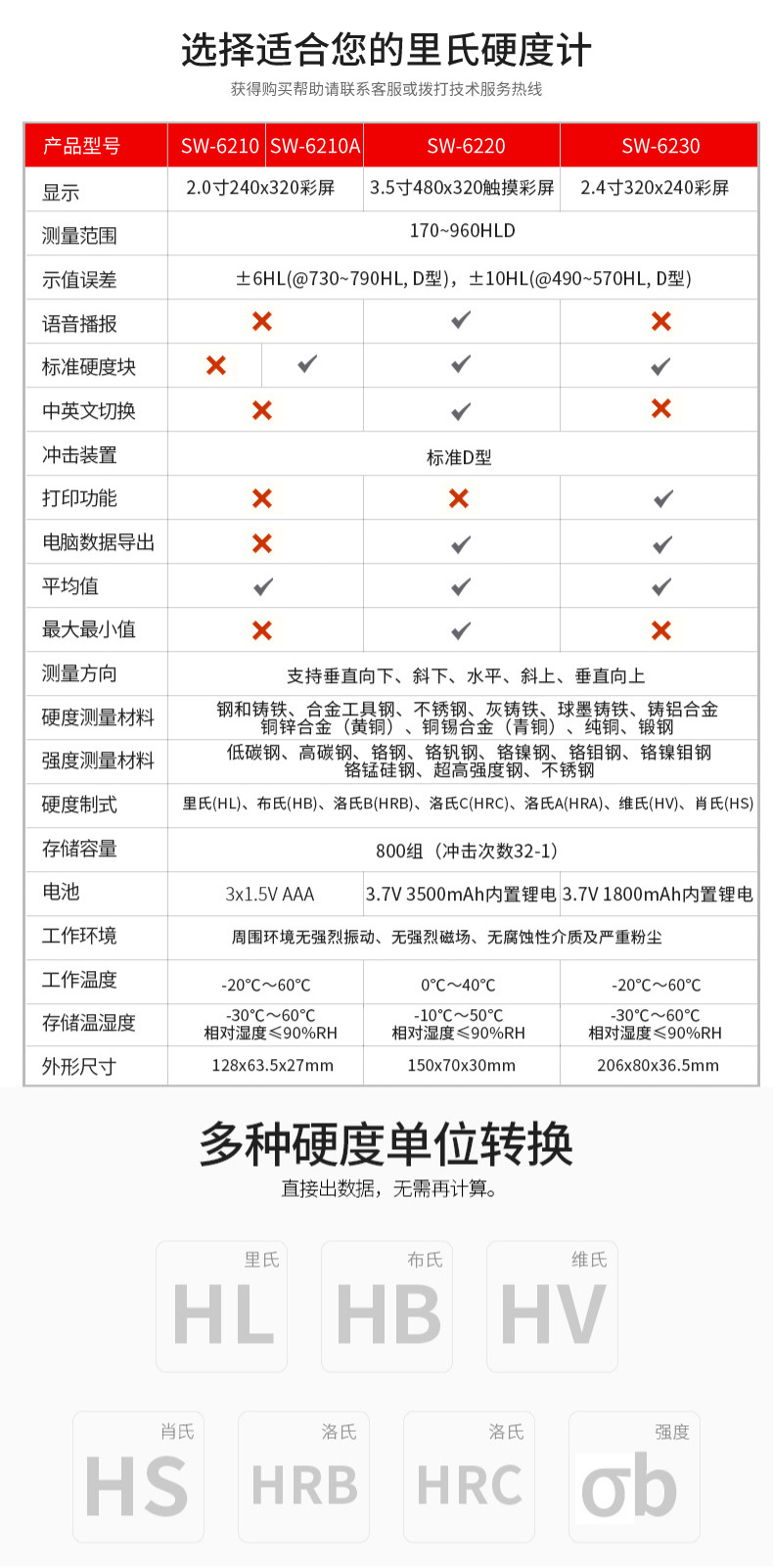 화웨이 SW-6210 휴대용 Leeb 경도 테스터 금속 강도 철 강철 경도 고정밀 경도 테스터