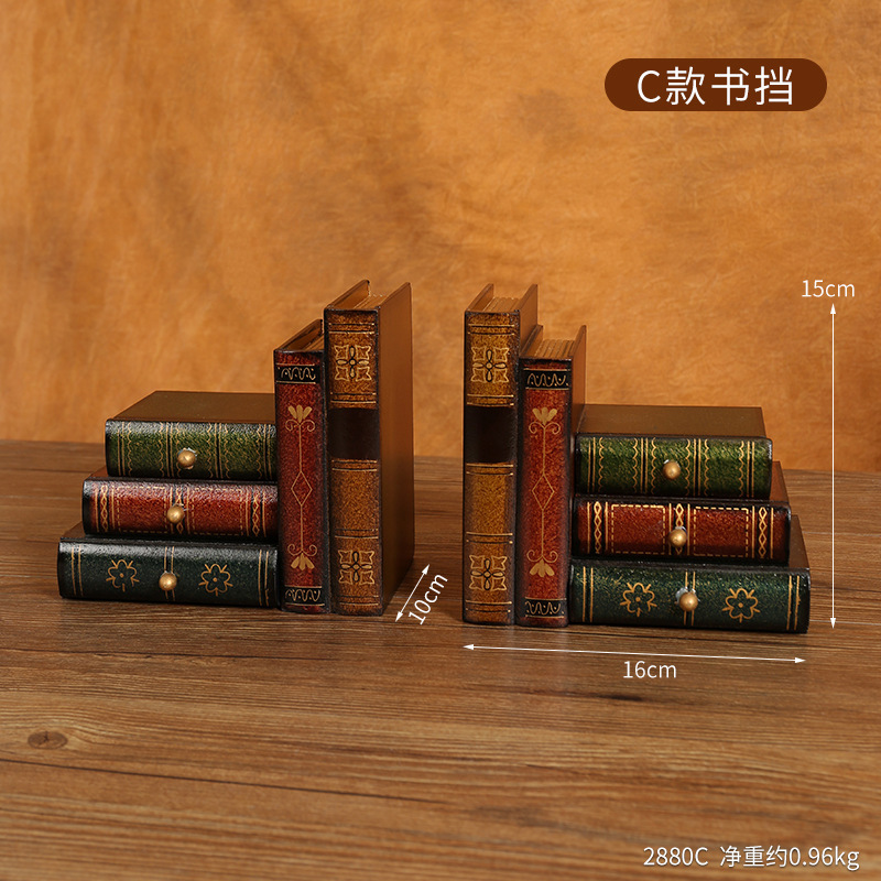 유럽식 시뮬레이션 레트로 북엔드 장식품 연구 책장 장식 개인화 된 나무 책 모양의 책 받침대 북엔드 세대 헤어스토어 가기