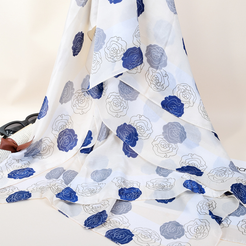 로즈 스카프 여성용 여름 긴 다양한 숄 거즈 실크 같은 이중 사용 스카프 비치 타올스토어 가기