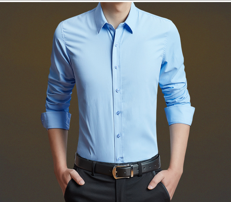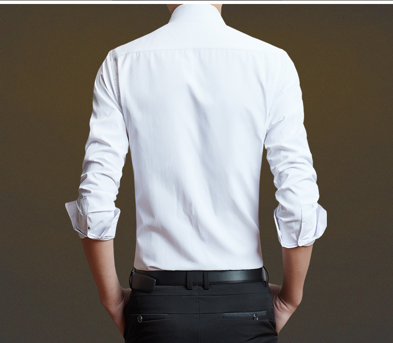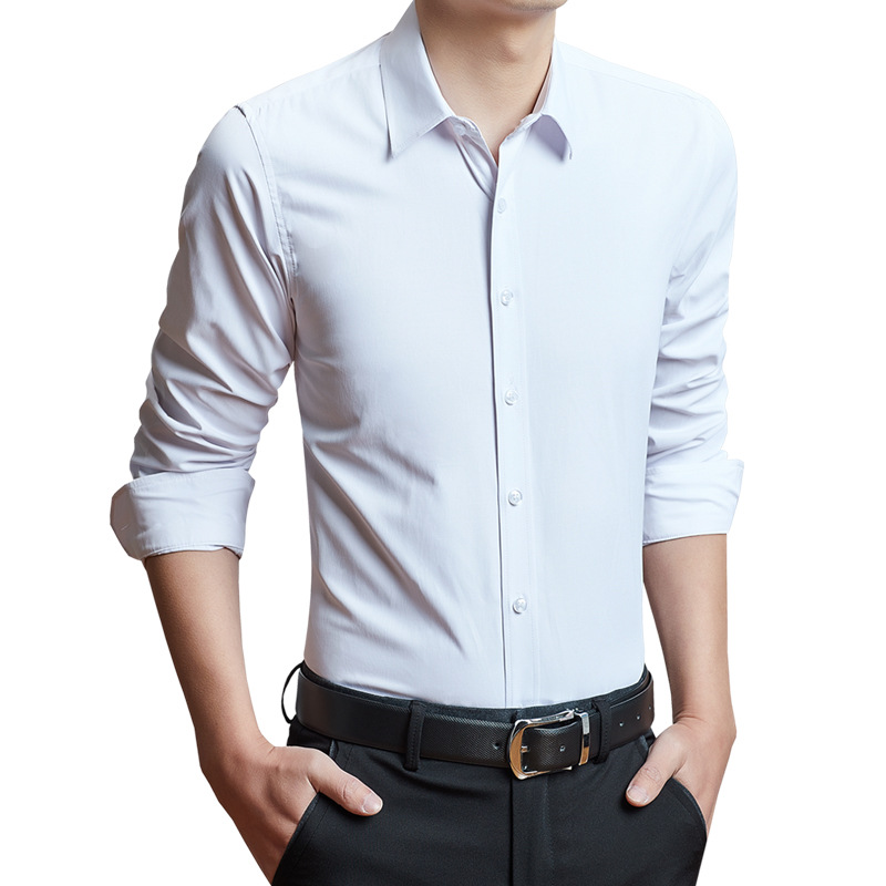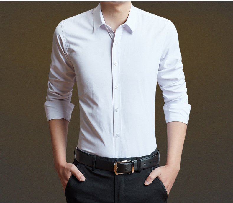 2021 신사복 비즈니스 캐주얼 긴팔 슬림 솔리드 컬러 화이트 셔츠 작업복 전문 드레스 셔츠