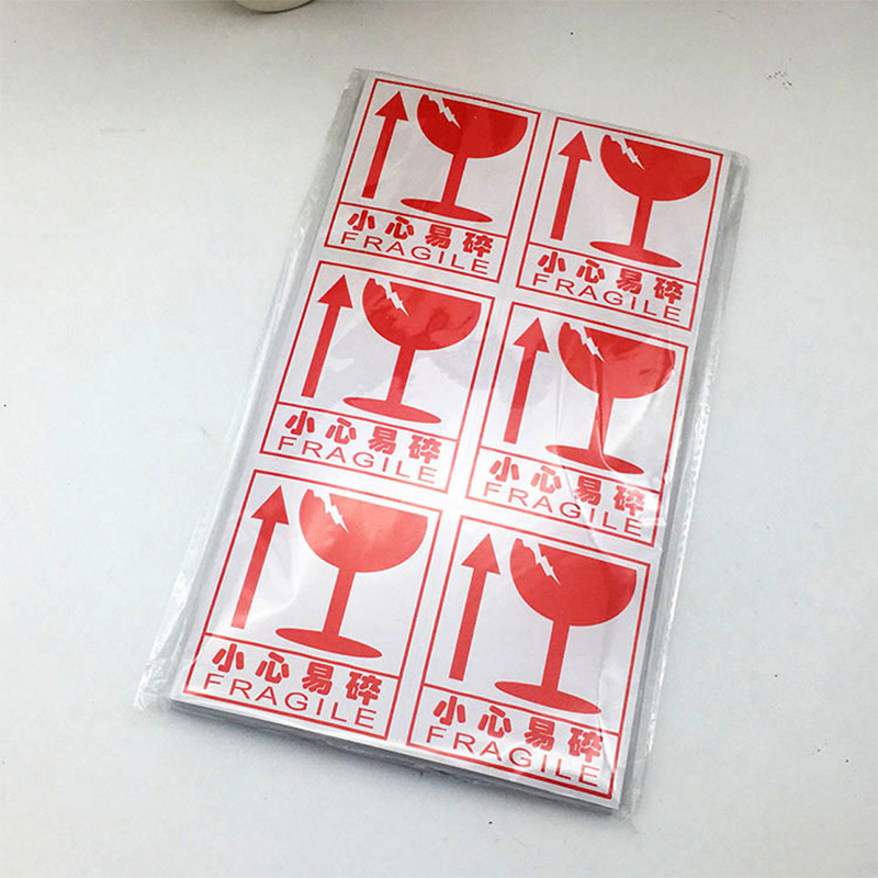 조심스럽게 재고 다루고, 누르지 말고, 라벨을 떨어 뜨리지 말고, 경고 스티커, 중국어 및 영어 버전, 깨지기 쉬운 라벨, 자체 접착 스티커