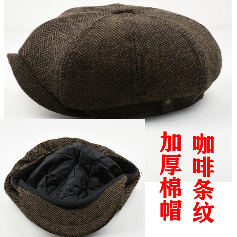 영국 스타일 터프 가이 앞으로 모자 남자 모자 베레모 줄무늬 모자 복고풍 팔각형 모자 터프 가이 남자 모자 도매스토어 가기