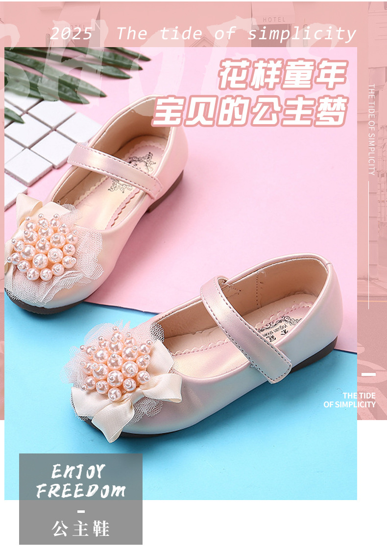 2025 여름 신상 여아 가죽 신발 한국 스타일 부드러운 밑창 공주 신발 결혼식 댄스 신발 진주 아기 캐주얼 신발
