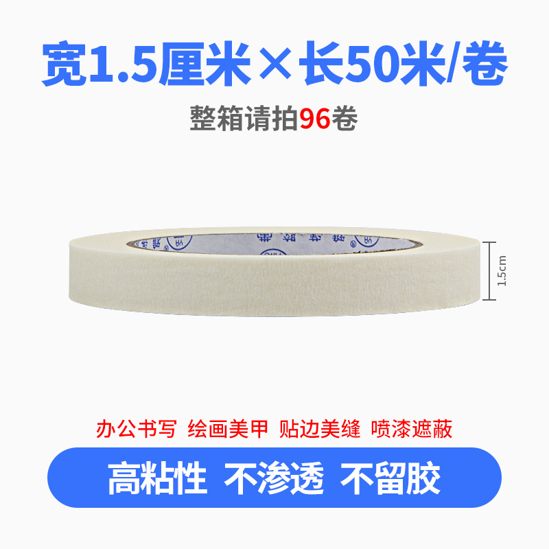 • 폭 1.5cm * 길이 50m [상자에 96롤을 가져가세요]. 흰색 마스킹 테이프(일반 접착 3.0inch 대형 종이 튜브)