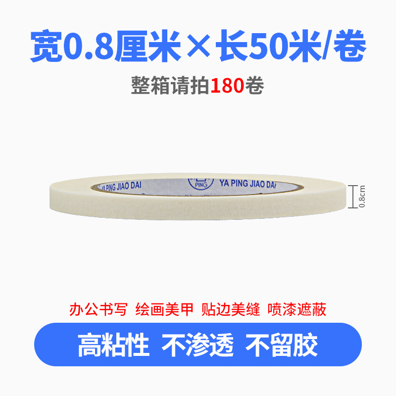 • 폭 0.8cm * 길이 50m [상자에 180롤을 가져가세요]. 흰색 마스킹 테이프(일반 접착 3.0inch 대형 종이 튜브)