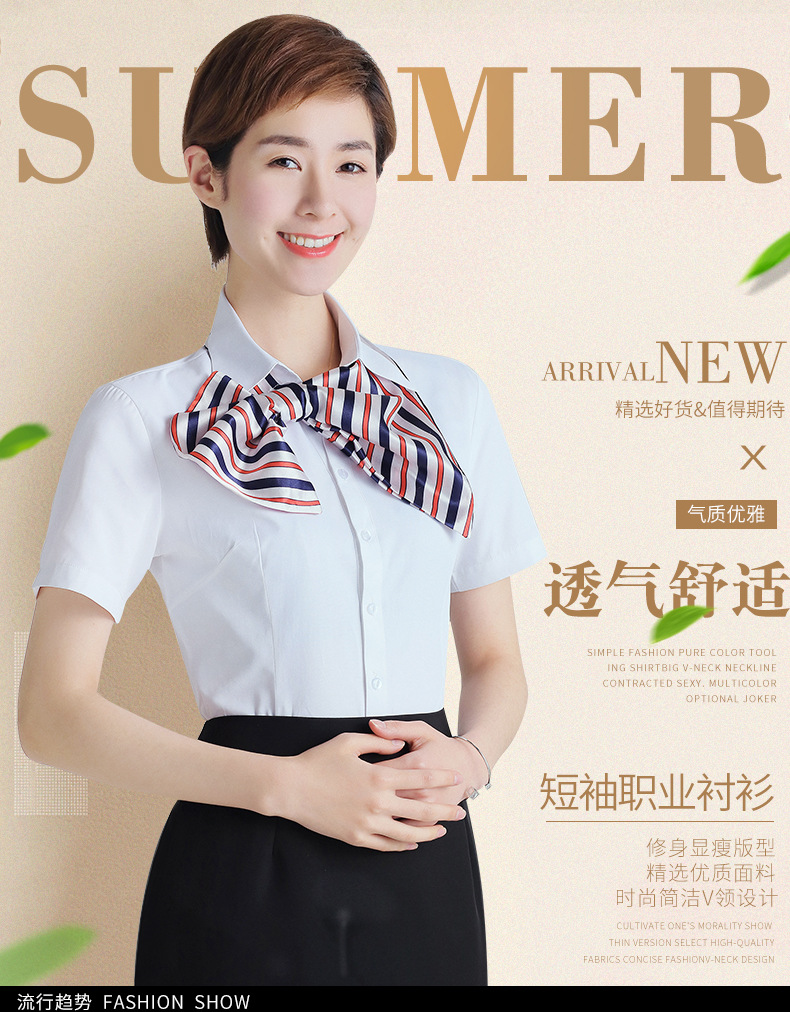 코튼 소프트 여름 새로운 비즈니스웨어 OL 화이트 셔츠 인터뷰 여성용 반팔 슬림핏 작업복 면 여성 셔츠