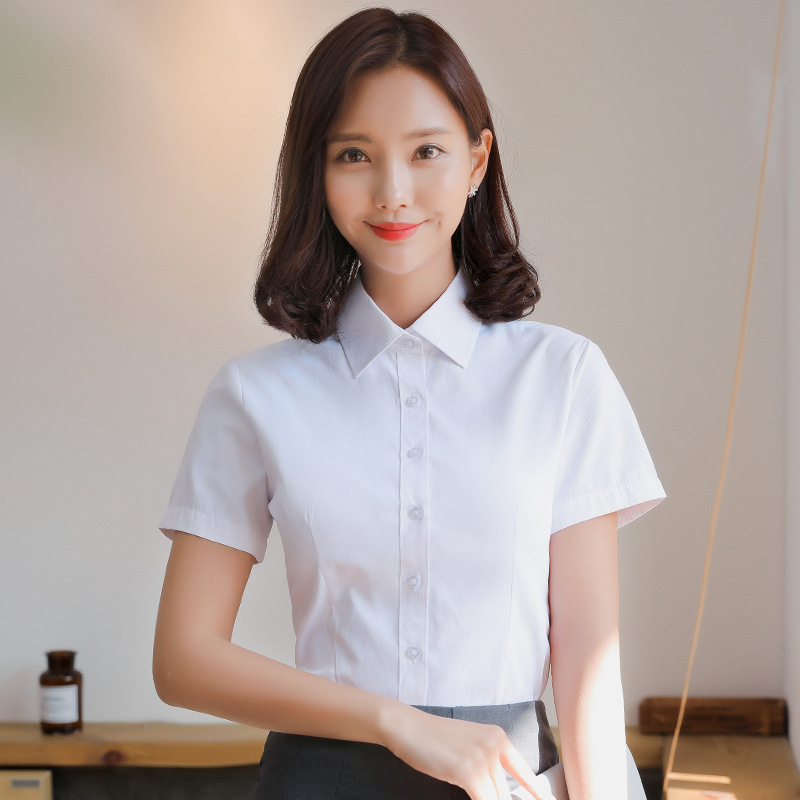 코튼 소프트 여름 새로운 비즈니스웨어 OL 화이트 셔츠 인터뷰 여성용 반팔 슬림핏 작업복 면 여성 셔츠스토어 가기