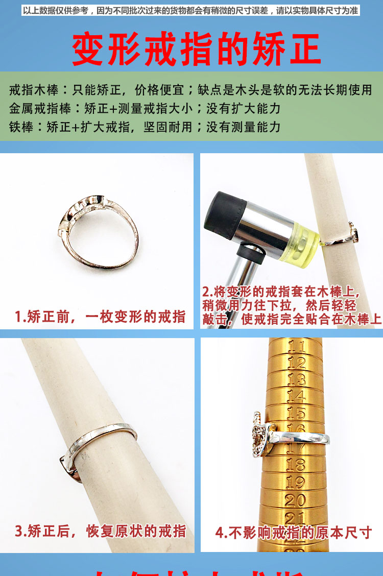 링 스틱 팔찌 스틱 골드 스털링 실버 보석 플라스틱 수리 도구 라운드 보정 타원형 나무 스틱 플라스틱 망치