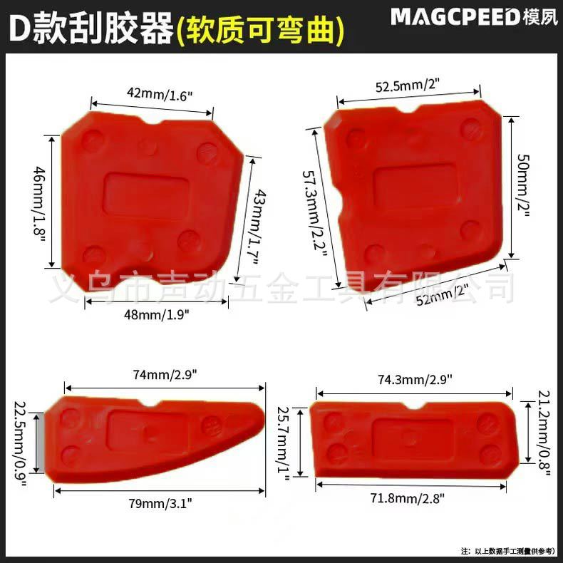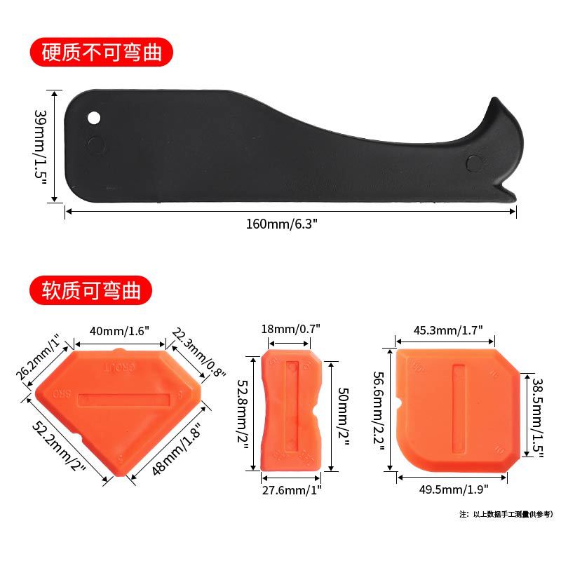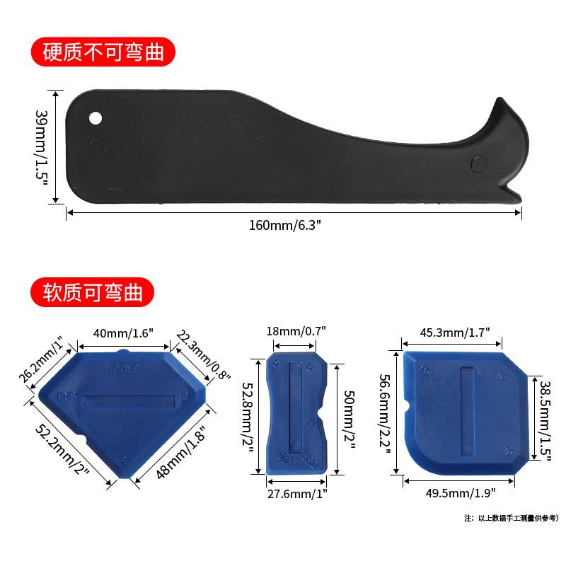 此款是我公司五金制品建筑用品之一,外贸热销,玻璃胶刮板4件套,10套起批。可塑性强,适用各种阴角方角美缝以及去除工具,因为是塑料件,需要在涂胶未干时候使用,干胶不适用,方便快捷。