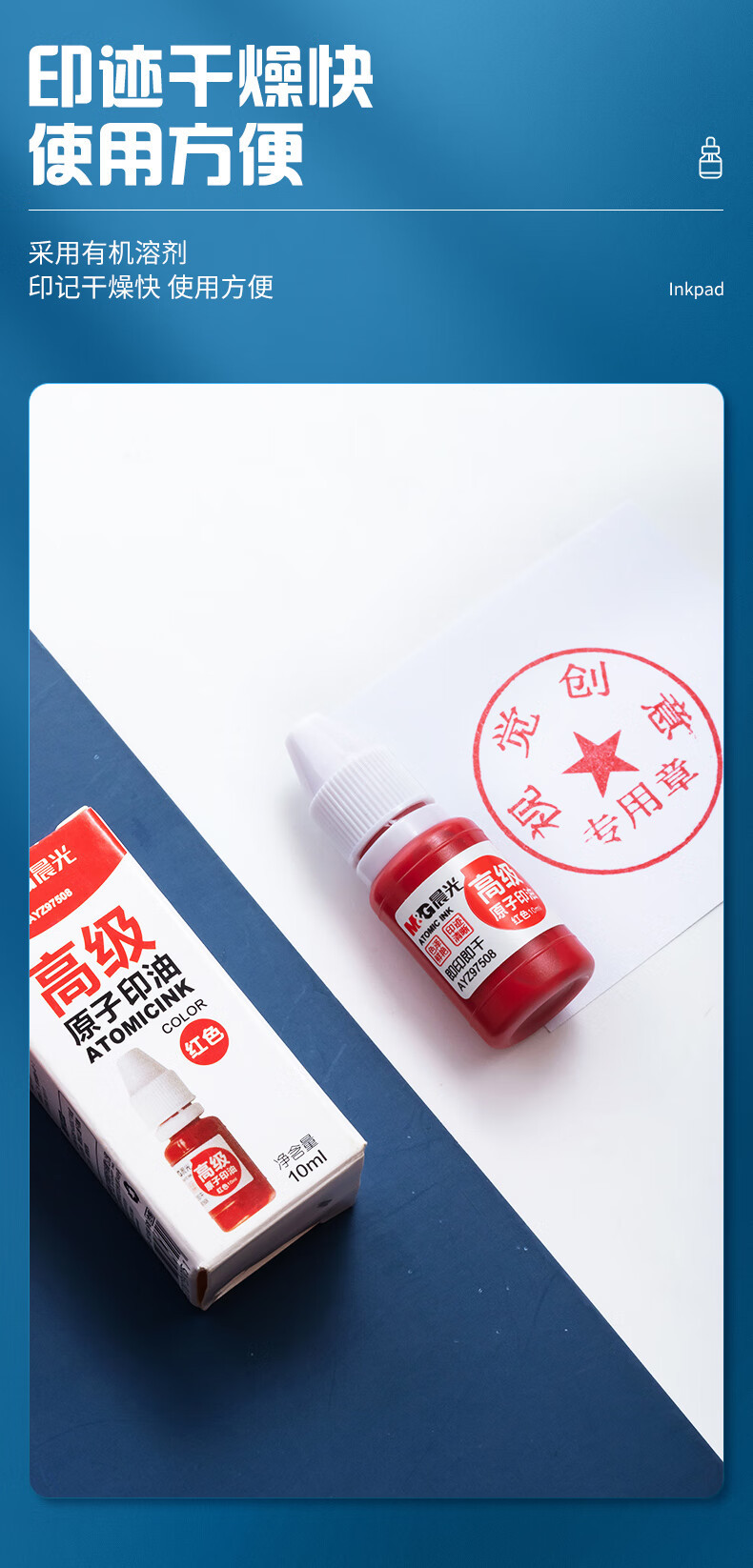 Chenguang 문구 빨간색 감광성 잉크 50ml 대용량 유성 씰 오일 사무실 스탬프 공식 스탬프 잉크 오일스토어 가기