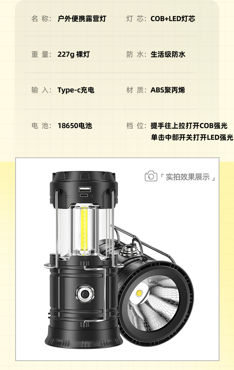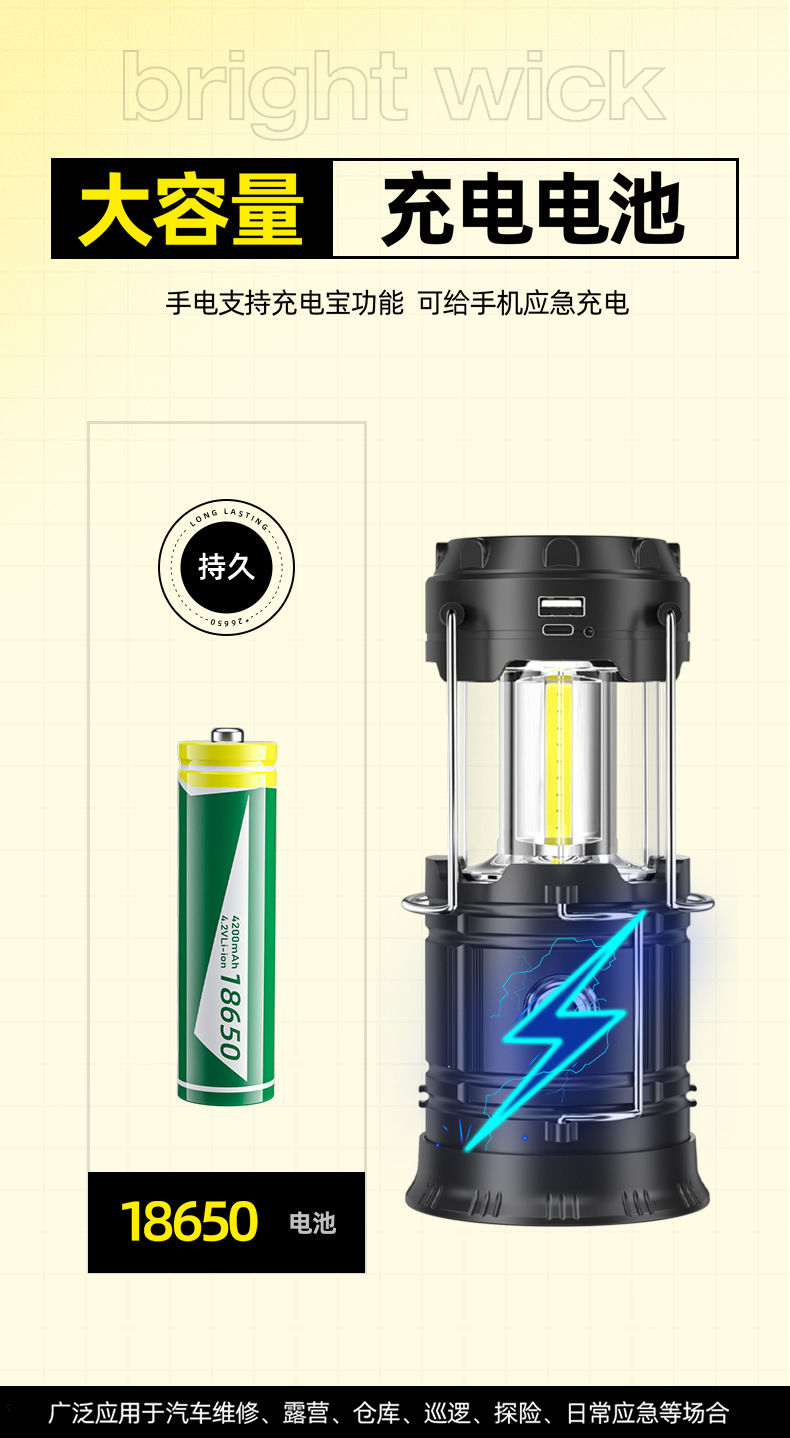 COB照明续航:拉伸照明1-2小时,底部照明约3-4小时